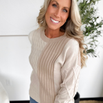 This cable knit sweater brings together natural, earthy tones and mixed patterns for a look that feels cozy, unique, and totally effortless. The texture and pattern play give it that “boutique find” vibe—perfect when you want something special without overthinking it. The soft knit keeps you warm on those hectic, on-the-go days, and the relaxed fit makes it an easy match with your favorite denim or leggings. It’s the kind of sweater that makes you feel put together the moment you slip it on. A neutral staple with just enough personality to keep things fun.