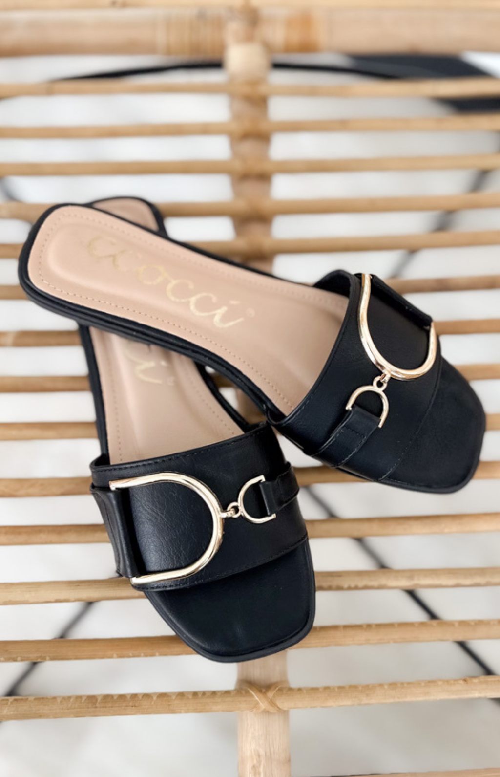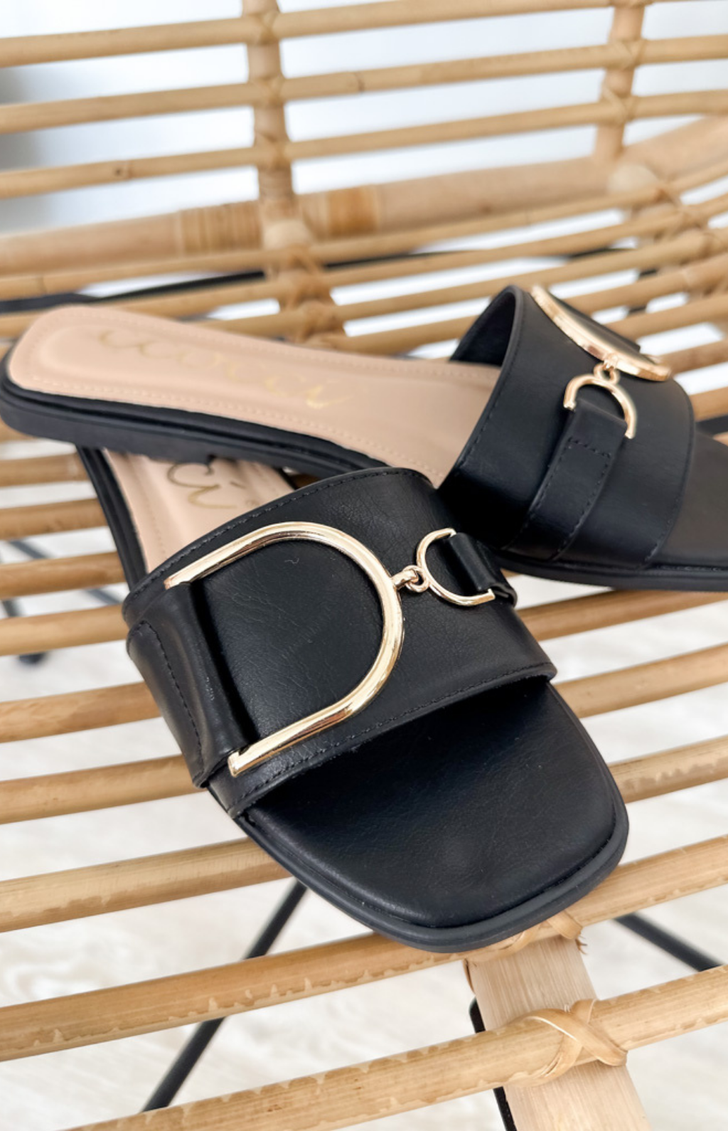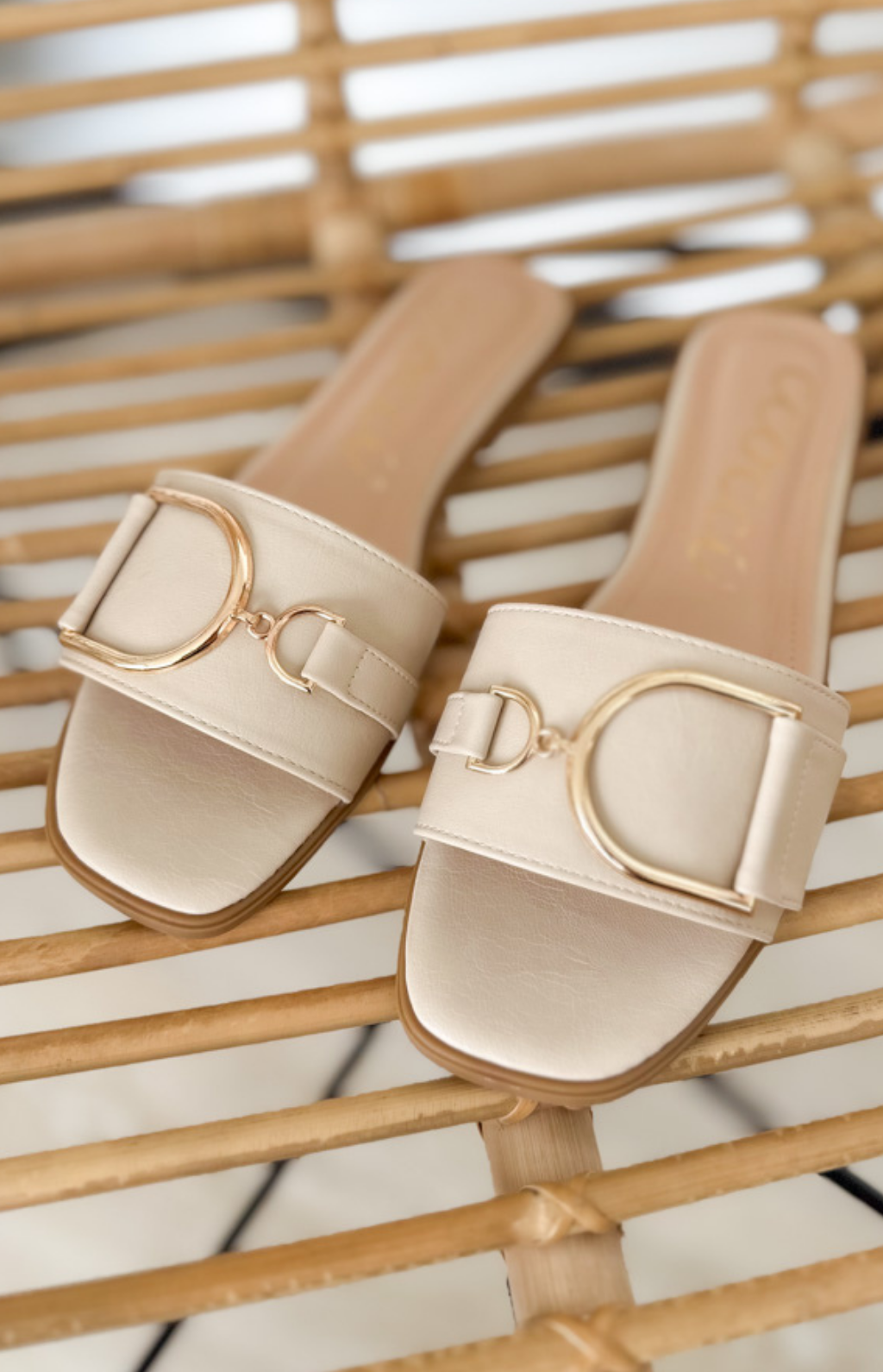 Slide into effortless style with these chic camel flat sandals. Designed with a single thick strap for a sleek and secure fit, they feature a stunning gold hoop clasp detail on the front that adds just the right touch of polish. The easy slip-on design makes them a must-have for busy days on the go—perfect for pairing with sundresses, denim, or flowy pants. Simple, classy, and totally wearable.