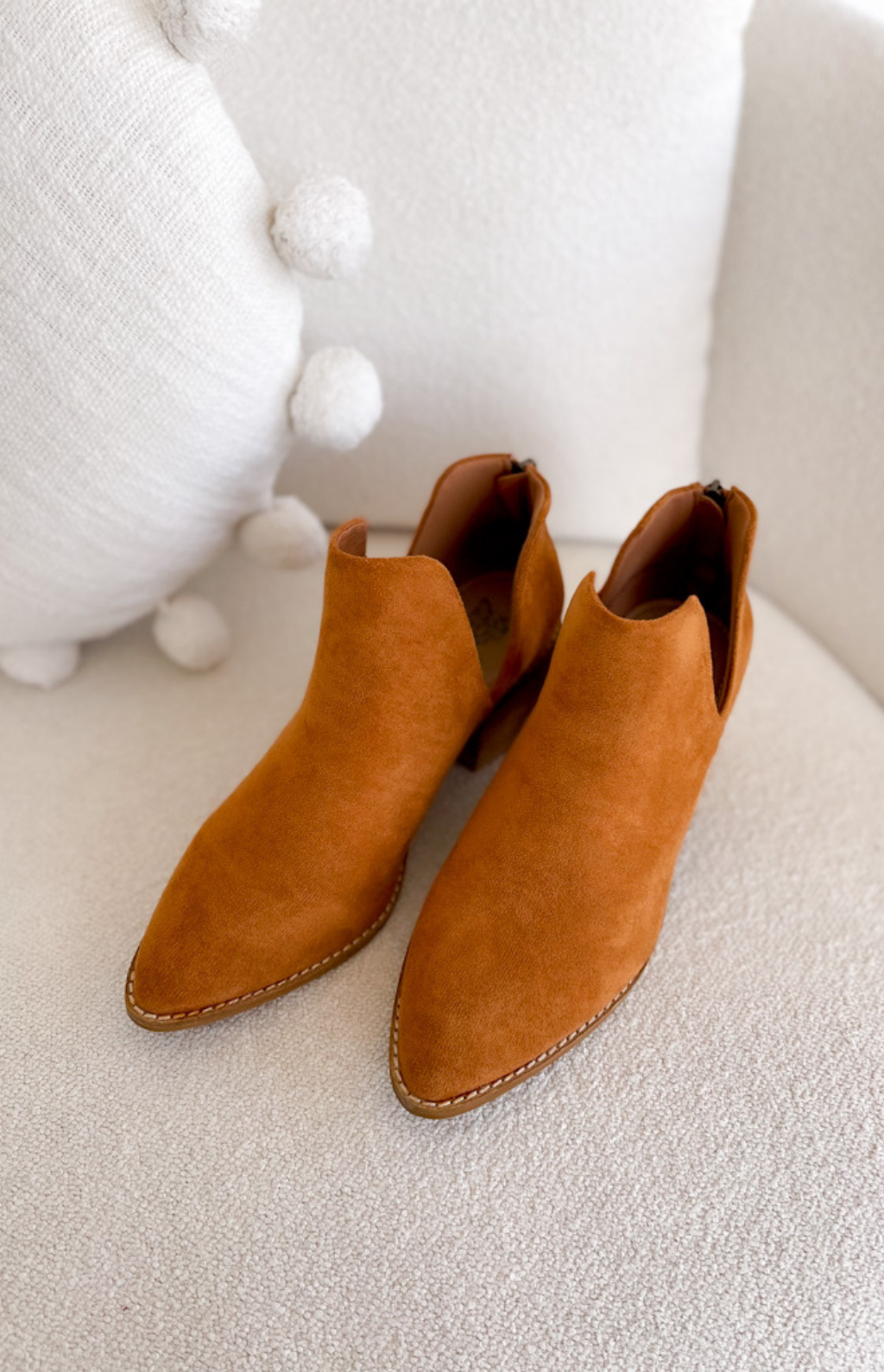 These camel suede ankle boots are sleek, timeless, and ready to elevate any outfit. The pointed toe instantly lengthens your look, while the soft suede adds a touch of luxe texture. The versatile camel shade pairs with everything from jeans to dresses, making them a go-to shoe for workdays, nights out, and everything in between.