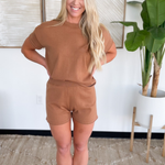 Soft, comfy and stylish! If you're looking for the perfect lounge shorts, the Camel Sweater Shorts will be your go-to choice! Crafted with a lightweight, sweater material, elastic waistband, and a rolled hemline detail. Style with the matching shirt for a trendy everyday comfy outfit!