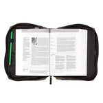 The Camo Poly-Canvas Organizer Bible Cover combines super storage with the fashionable camo look.