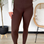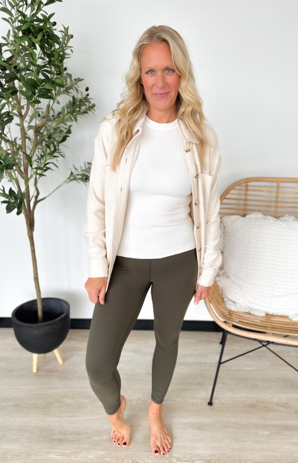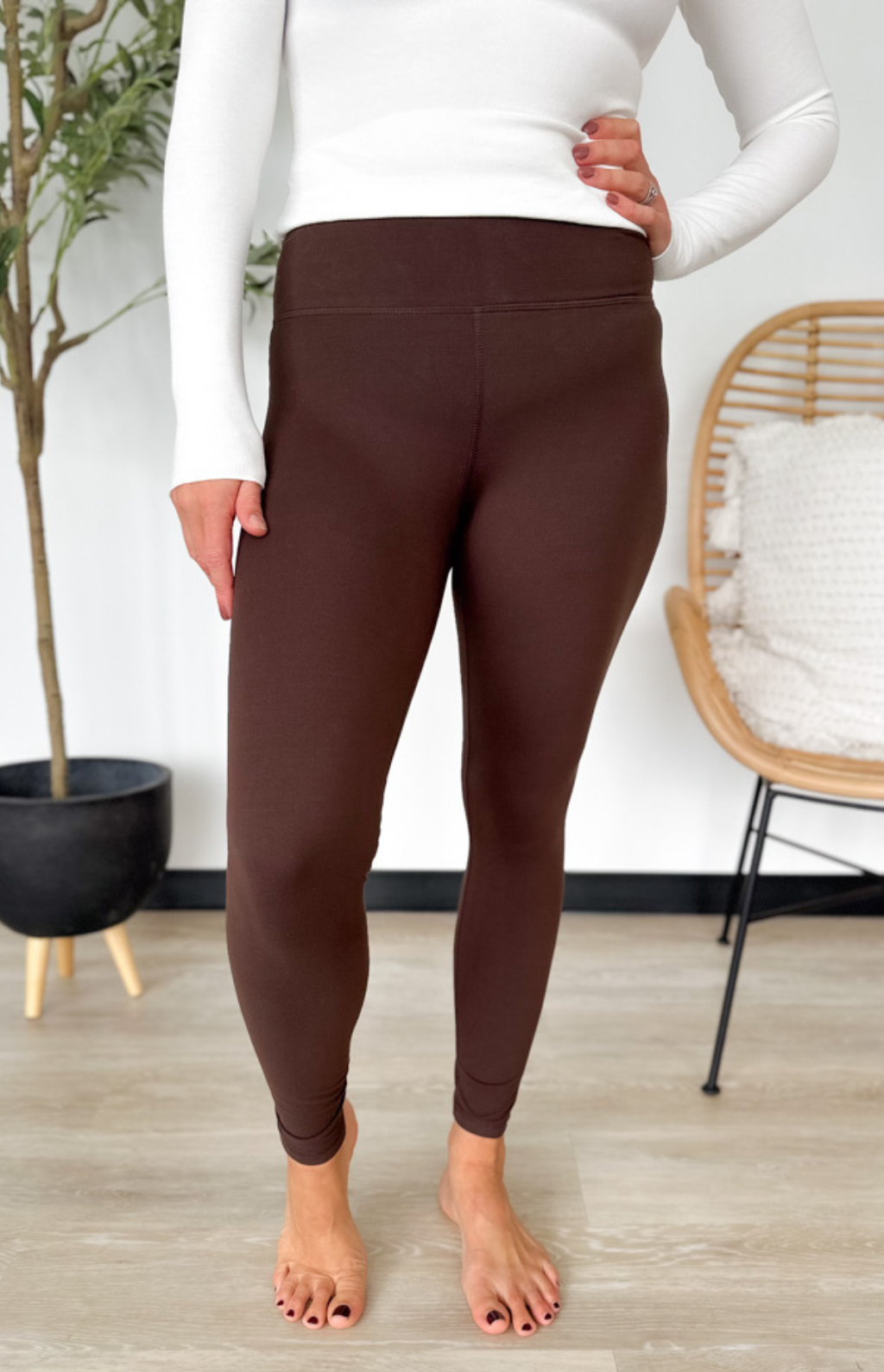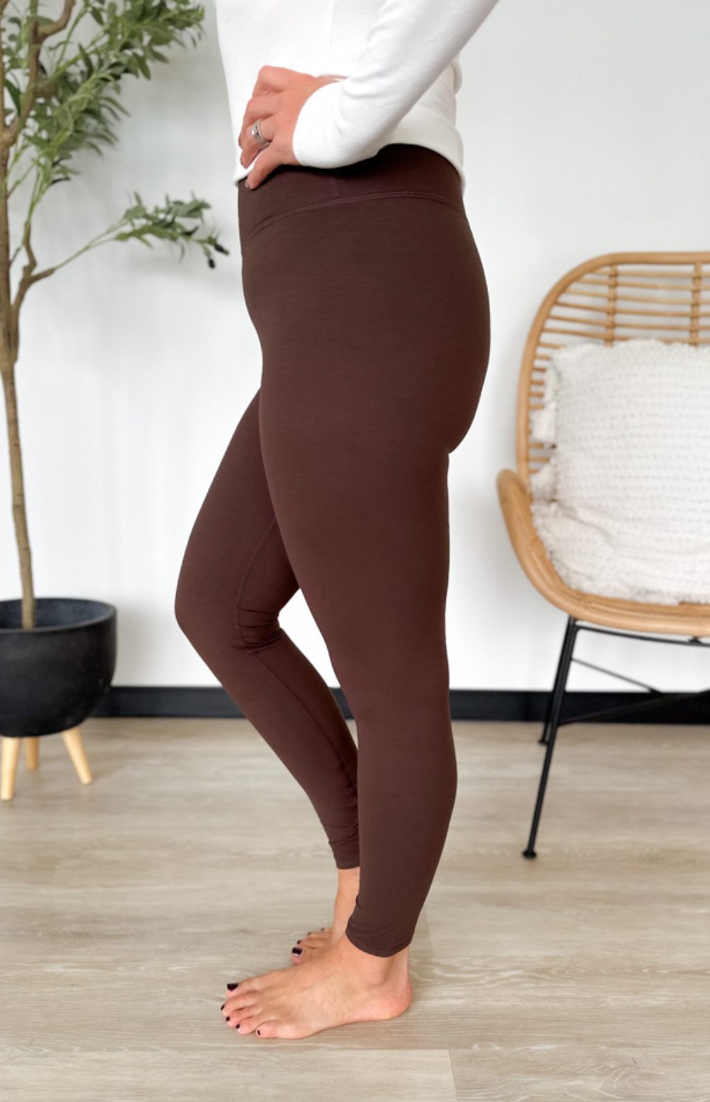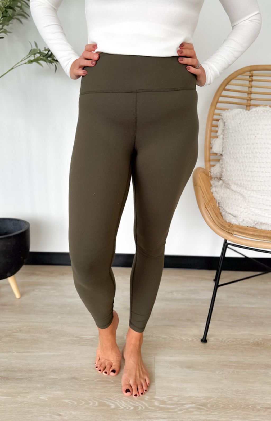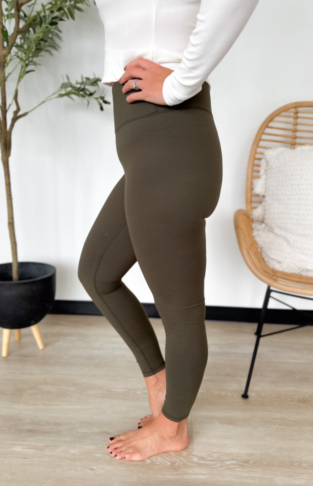 These high-rise full-length leggings are the ultimate everyday essential, available in two easy-to-love colors: olive and brown. The soft, stretchy fabric keeps you comfortable from morning errands to evening wind-downs, while the high waistband offers a smooth, flattering fit that stays put. Both colors pair effortlessly with your favorite tees, sweaters, and jackets, making them a versatile go-to for any season. Comfy, flattering, and endlessly wearable—these leggings are made for your busy, on-the-go days.