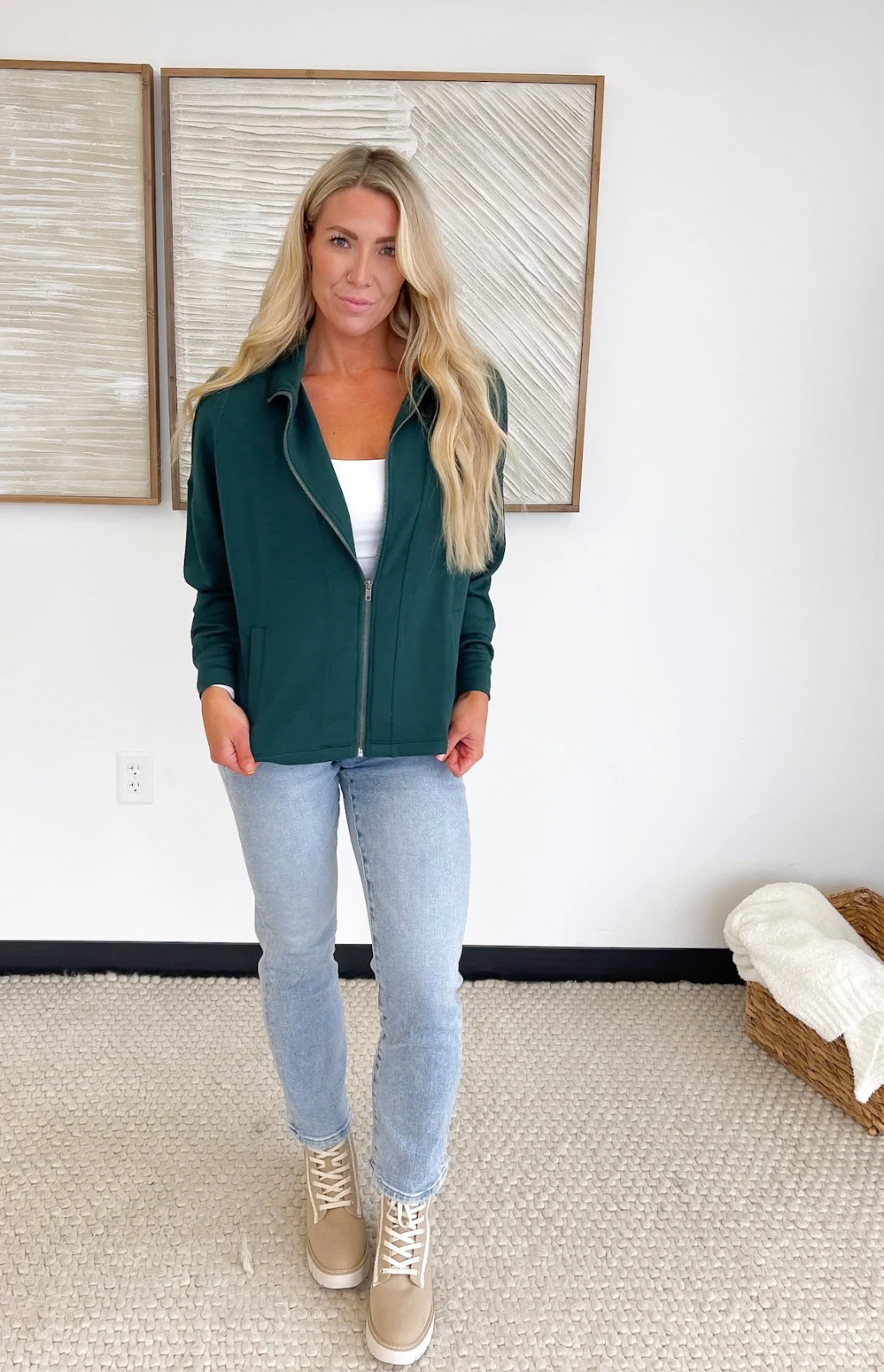This is the kind of jacket you’ll find yourself grabbing on every busy morning, girl. It’s super lightweight, zips all the way up, and has pockets big enough for all the little things you’re juggling. The fit is easy and relaxed, so it layers effortlessly over tees or tanks without feeling bulky. Perfect for carpool runs, grocery stops, or those breezy casual days when you still want to look pulled together. Toss it on and head out the door feeling comfy, cute, and totally capable.