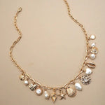 Charm Necklace, featuring a stunning combination of multi-seashell, starfish, puka, and pearl charms. This playful yet elegant necklace brings together natural-inspired elements, each charm adding a unique touch that evokes beachy vibes and coastal beauty.