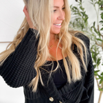 Chunky Black Knit Deep V Button Cardigan