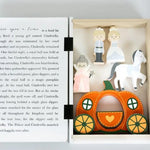 Embark on a whimsical adventure through the pages of our enchanting 8x12x2.5 Storybook Set, featuring the timeless tale of Cinderella. Let your imagination soar as you journey through the captivating narratives and vibrant illustrations that bring these classic stories to life. Each piece of the set fits snugly inside the wooden "book" for effortless storage, while the stunning cover adds a touch of elegance to any bookshelf or coffee table display.