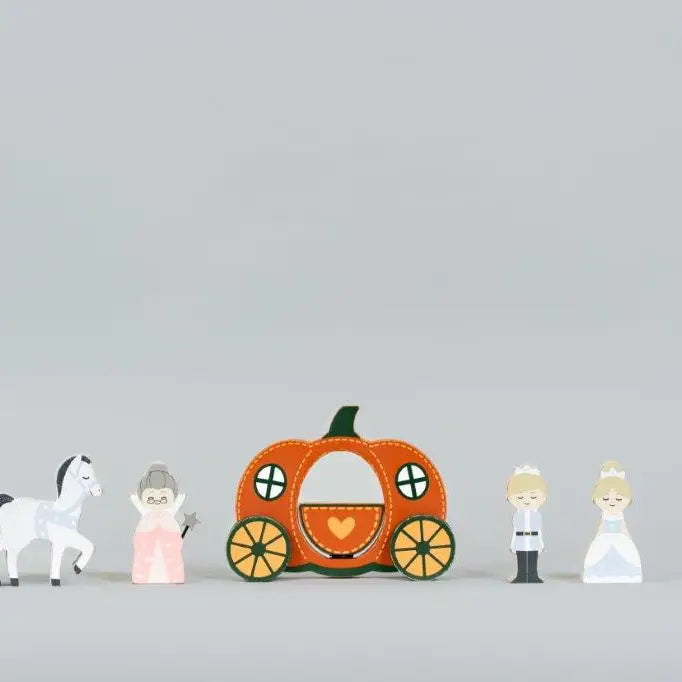 Included is Cinderella and her Prince, the Fairy Godmother, a noble horse, and of course Cinderella's magical pumpkin carriage. Our story is printed on the inside cover.