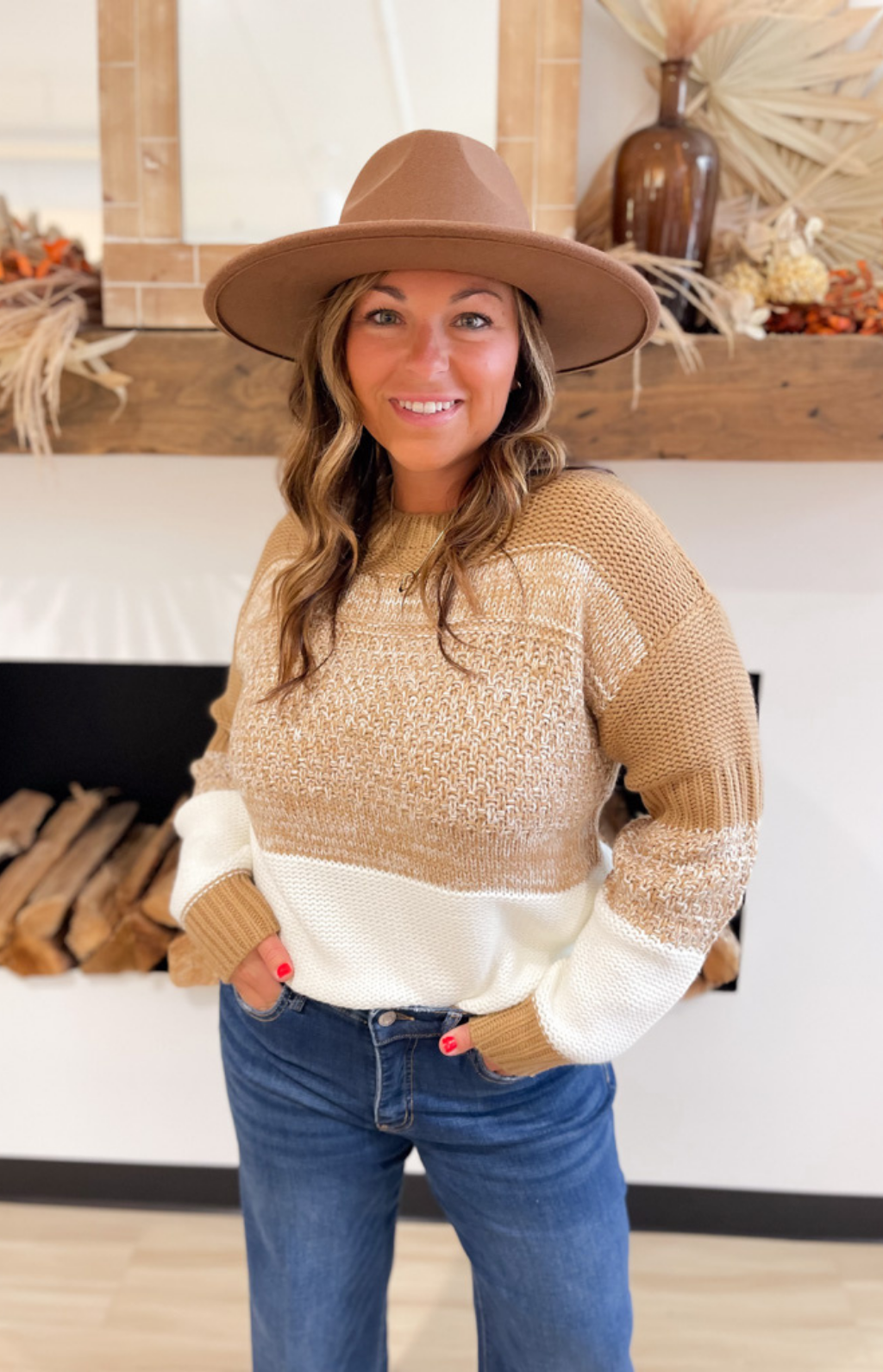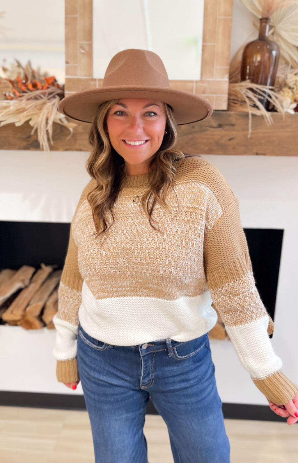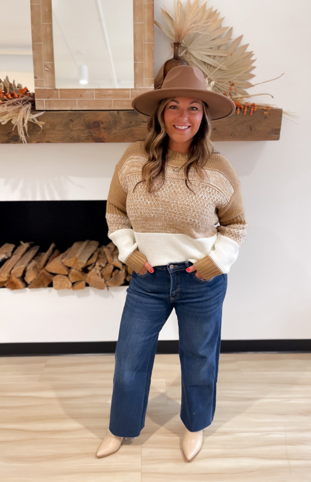This taupe and cream striped color block sweater is the perfect balance of cozy and chic. The relaxed fit gives it that effortless, laid-back vibe, while the knit fabric keeps it soft and comfortable for all-day wear. The mix of stripes and color blocking adds just the right amount of visual interest without being too busy. Easy to pair with jeans, leggings, or even tailored pants, it’s a versatile piece you’ll reach for on repeat. A timeless neutral palette that makes getting dressed simple and stylish.