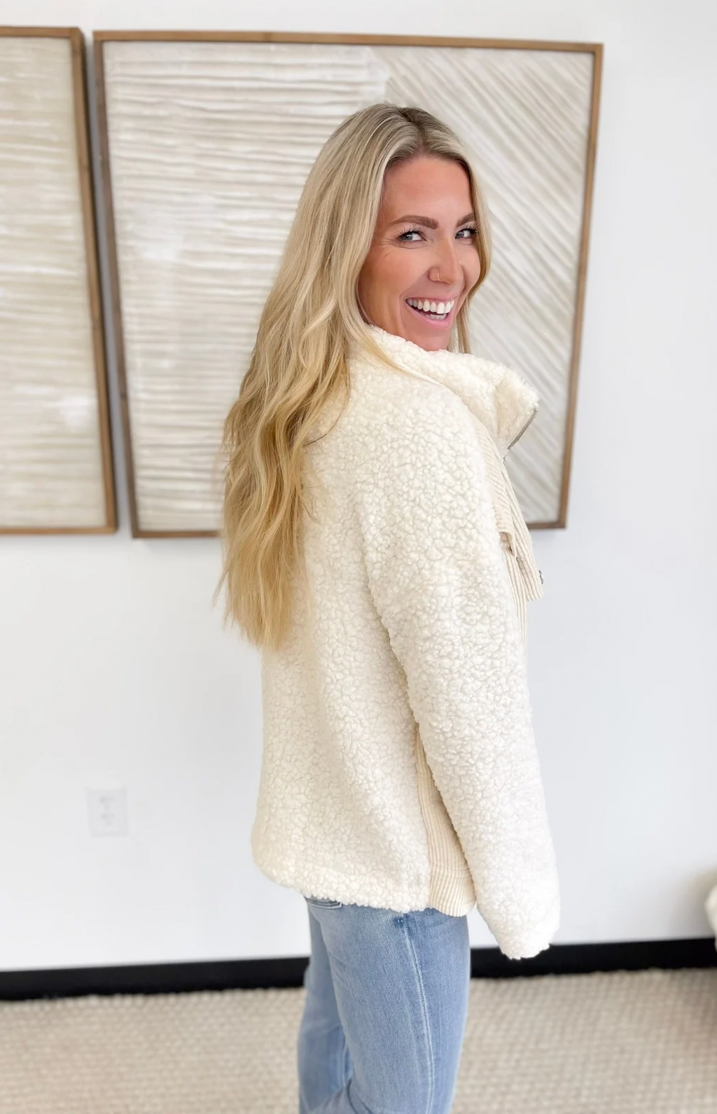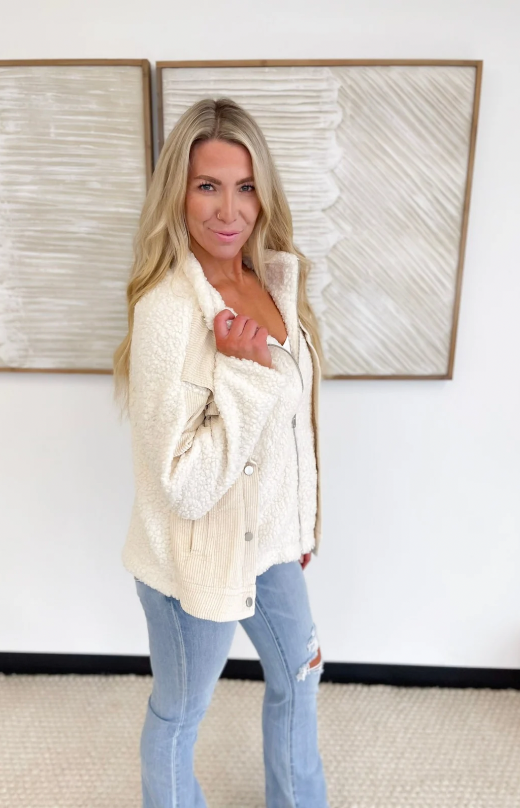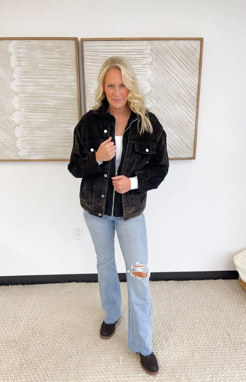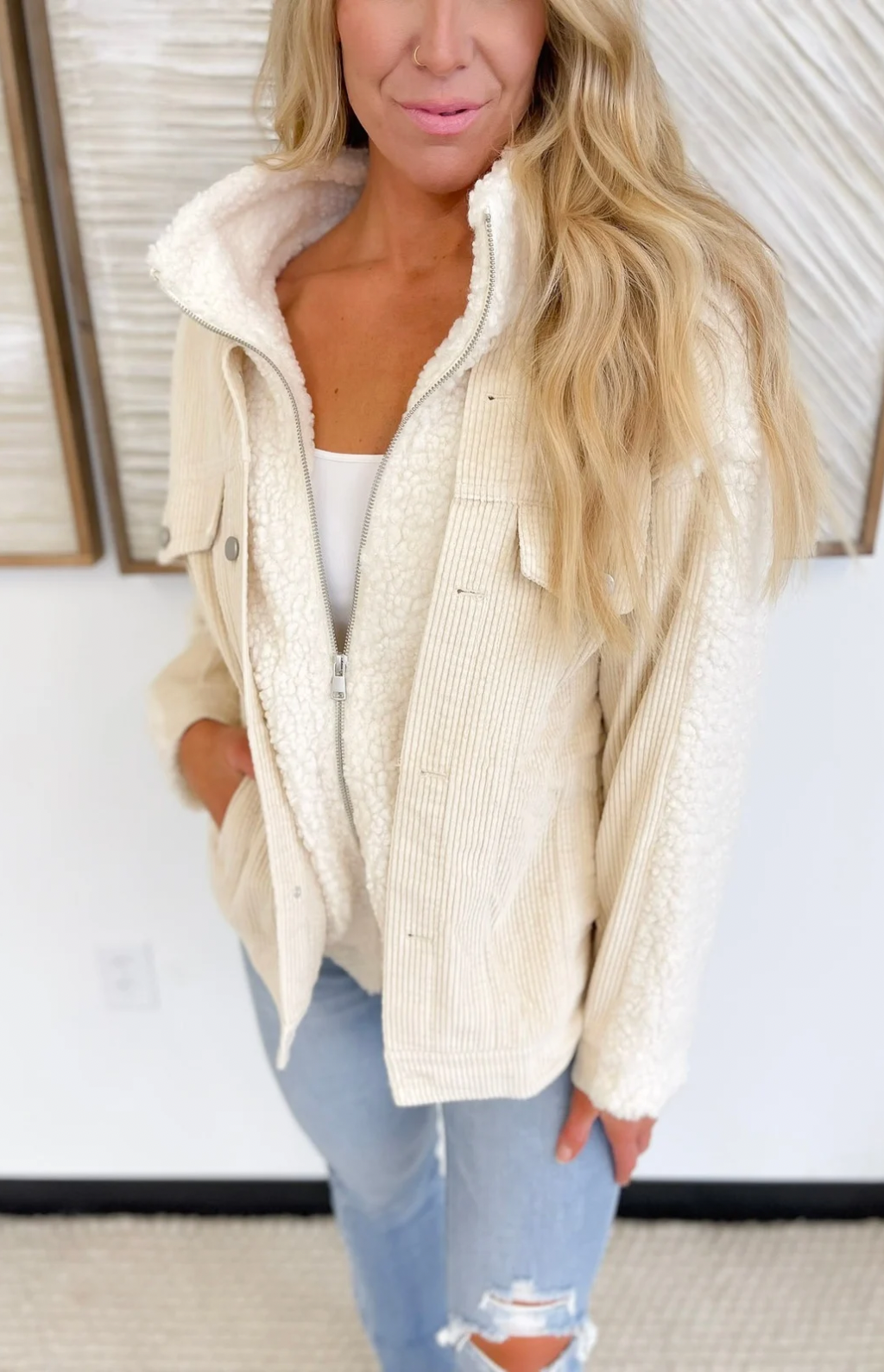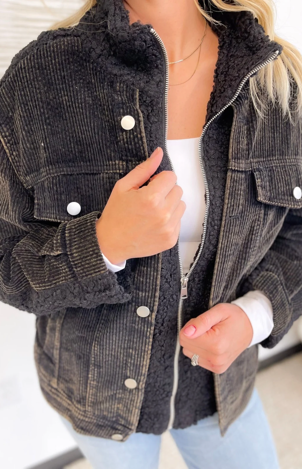 Corduroy/Sherpa Zip Up Jacket (2 Colors)