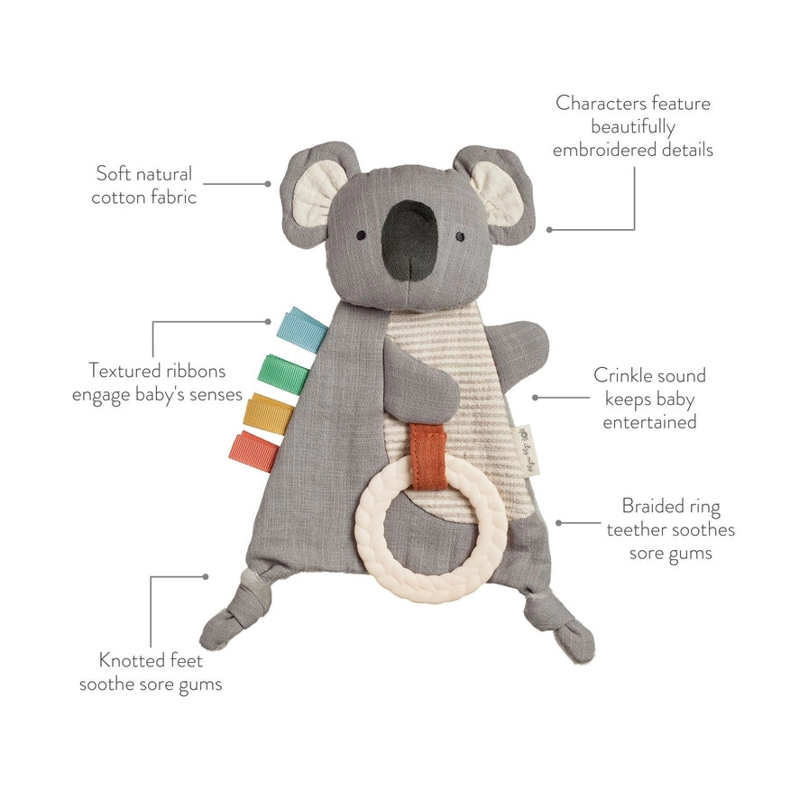 With features like soft natural cotton fabric, textured ribbons and a braided teether, baby will love to explore this new friend. Watch as your little one is captivated by crinkles and giggles!