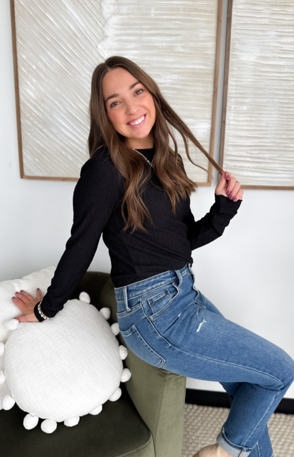 Crinkled Long Sleeve Top (3 Colors)