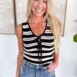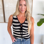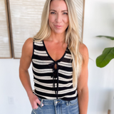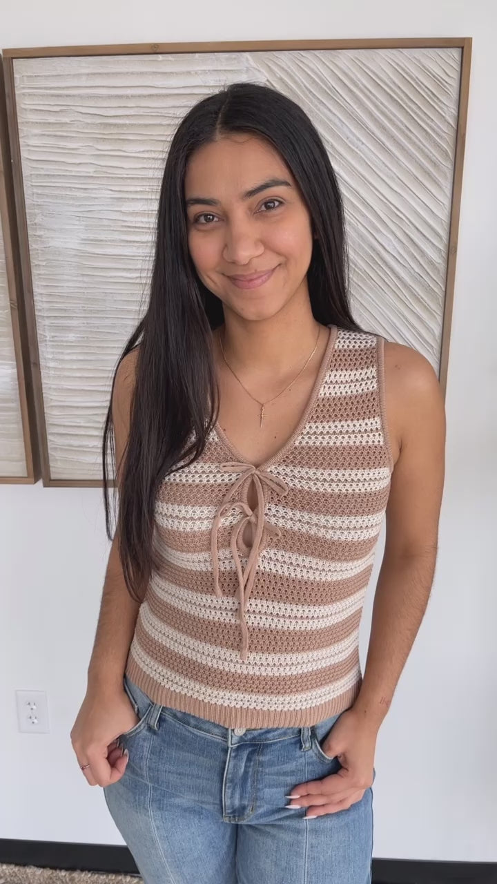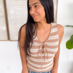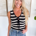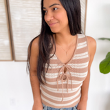 Elevate your everyday wardrobe with this new Knitted Double Tie Top! Crafted from a lightweight crochet material, two adjustable ties on the front making it a customizable fit and a sleeveless design. Stay on trend with new top! Style with a basic tank top and jeans for the perfect summer look!
