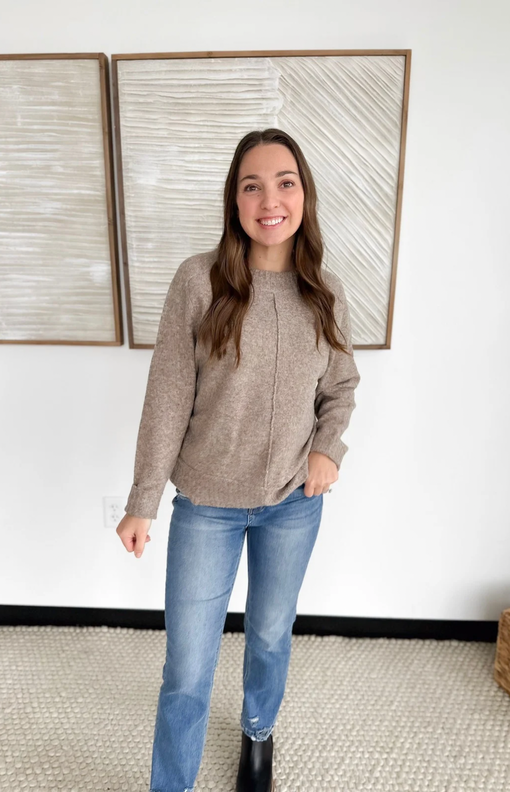 This dark taupe lightweight knit sweater is that every day essential you’ll be so grateful to have in your closet. The classic fit gives you a clean, timeless look that’s easy to dress up or down, whether you’re headed into the office or running weekend errands. It’s light enough for layering but still soft and cozy on its own, making it a perfect year-round go-to. The color is beautifully neutral—so effortless to pair with denim, black, or your favorite prints. It’s one of those simple, polished pieces that makes getting ready feel easy, even on your busiest mornings.