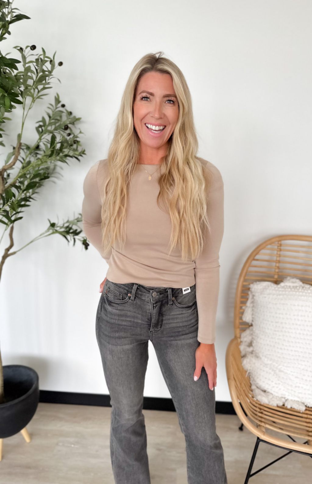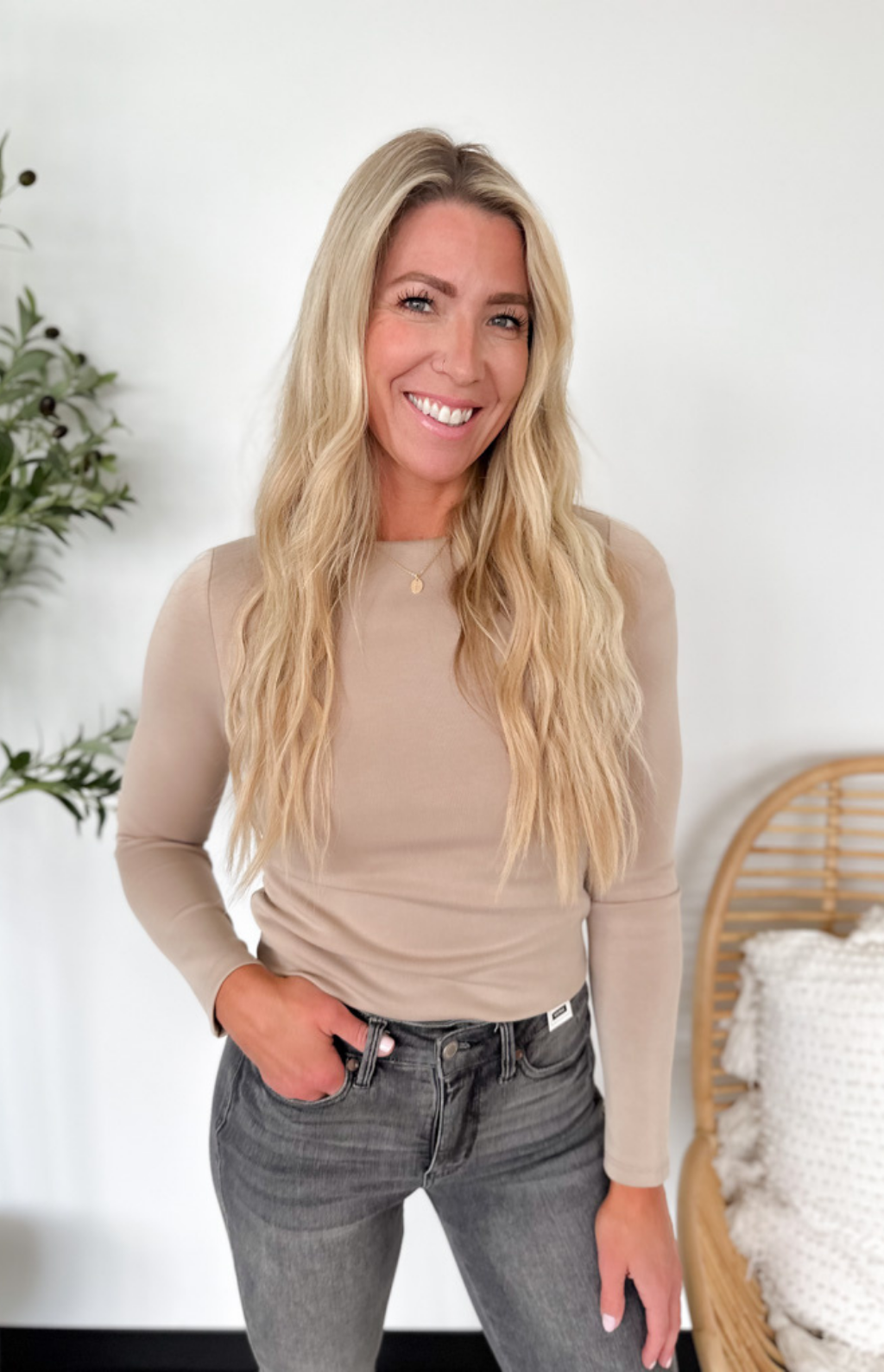 This double-layer taupe long sleeve top is effortlessly stylish and perfectly on-trend. The soft, lightweight fabric and double-layer design give it a polished, textured look, while the boat neckline adds a touch of elegance. The cropped length makes it ideal for pairing with high-waisted jeans, skirts, or trousers, creating a balanced, flattering silhouette. Neutral and versatile, it’s a go-to piece for busy days when you want to feel put-together with minimal effort.