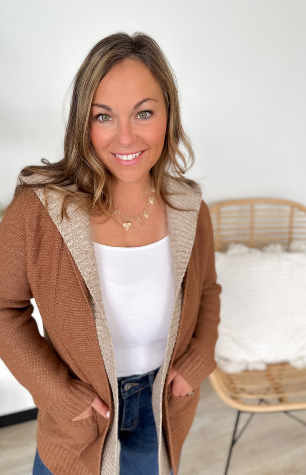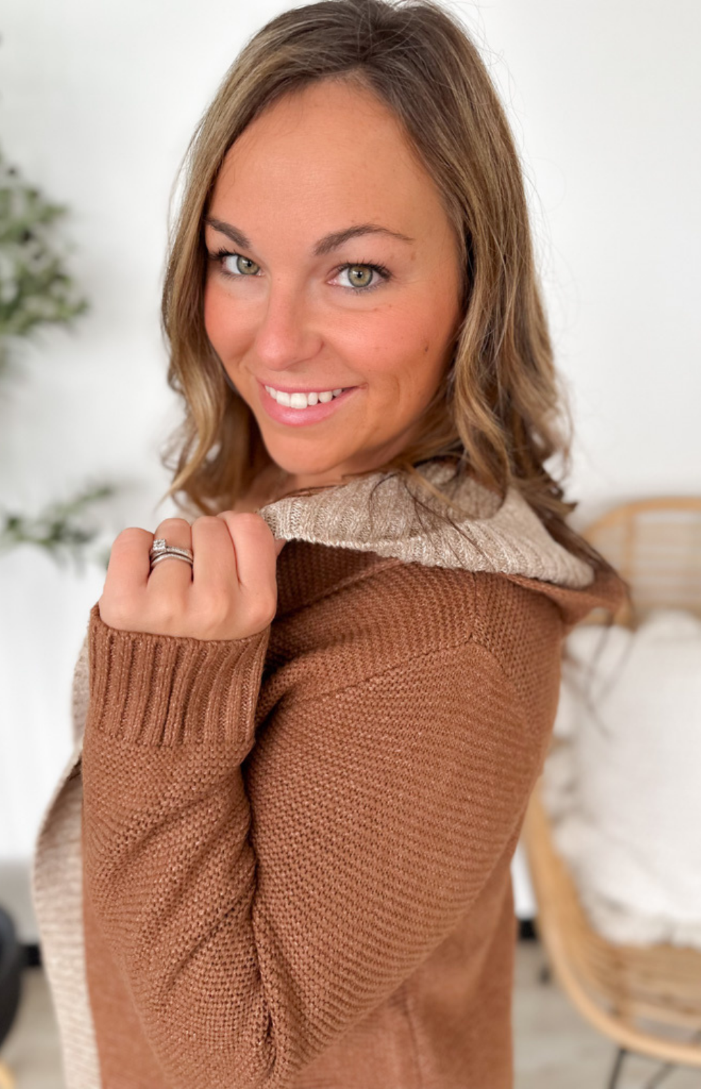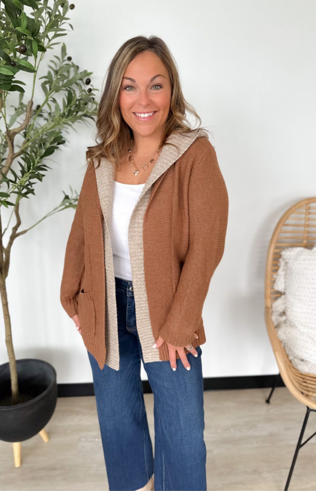 This open-front knit cardigan is all about cozy comfort with a stylish twist. The double-layered look adds texture and warmth, while the attached hood gives it that relaxed, laid-back vibe you’ll love. Soft, easy to wear, and perfect for layering, it’s the kind of piece you’ll grab again and again through the seasons. Pair it with jeans and a tee for casual days or leggings for cozy nights in. Effortless, versatile, and oh-so-comfy—this cardigan checks all the boxes.