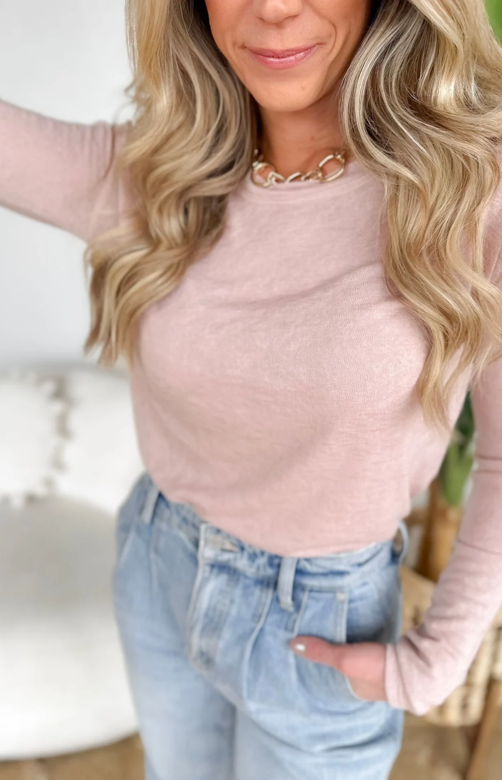 Dusty Rose Lightweight Knit Long Sleeve Top