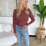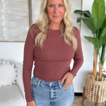 Burgundy Fitted Round Neck Long Sleeve Top