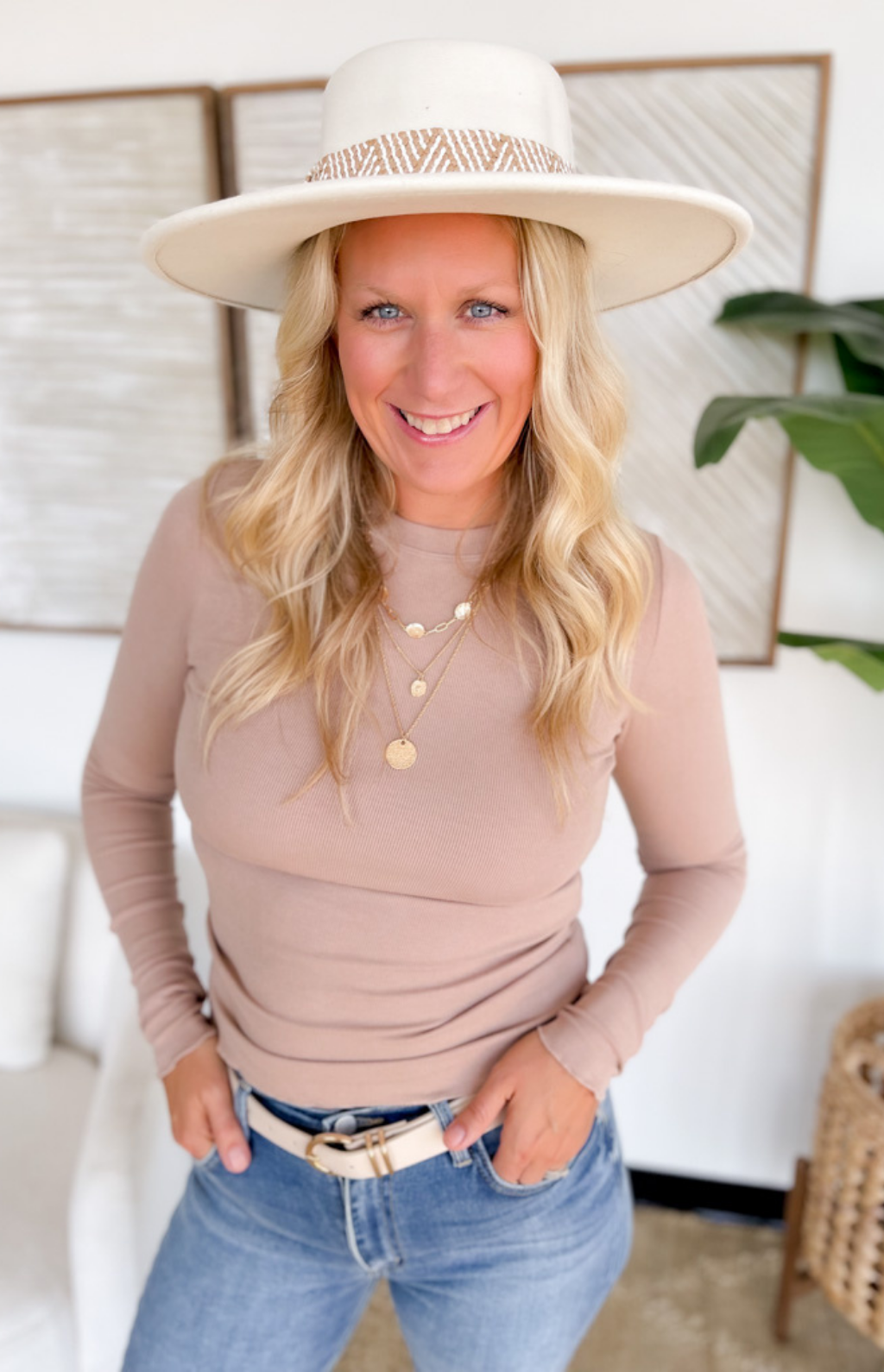 Fitted Round Neck Long Sleeve Top - Mocha