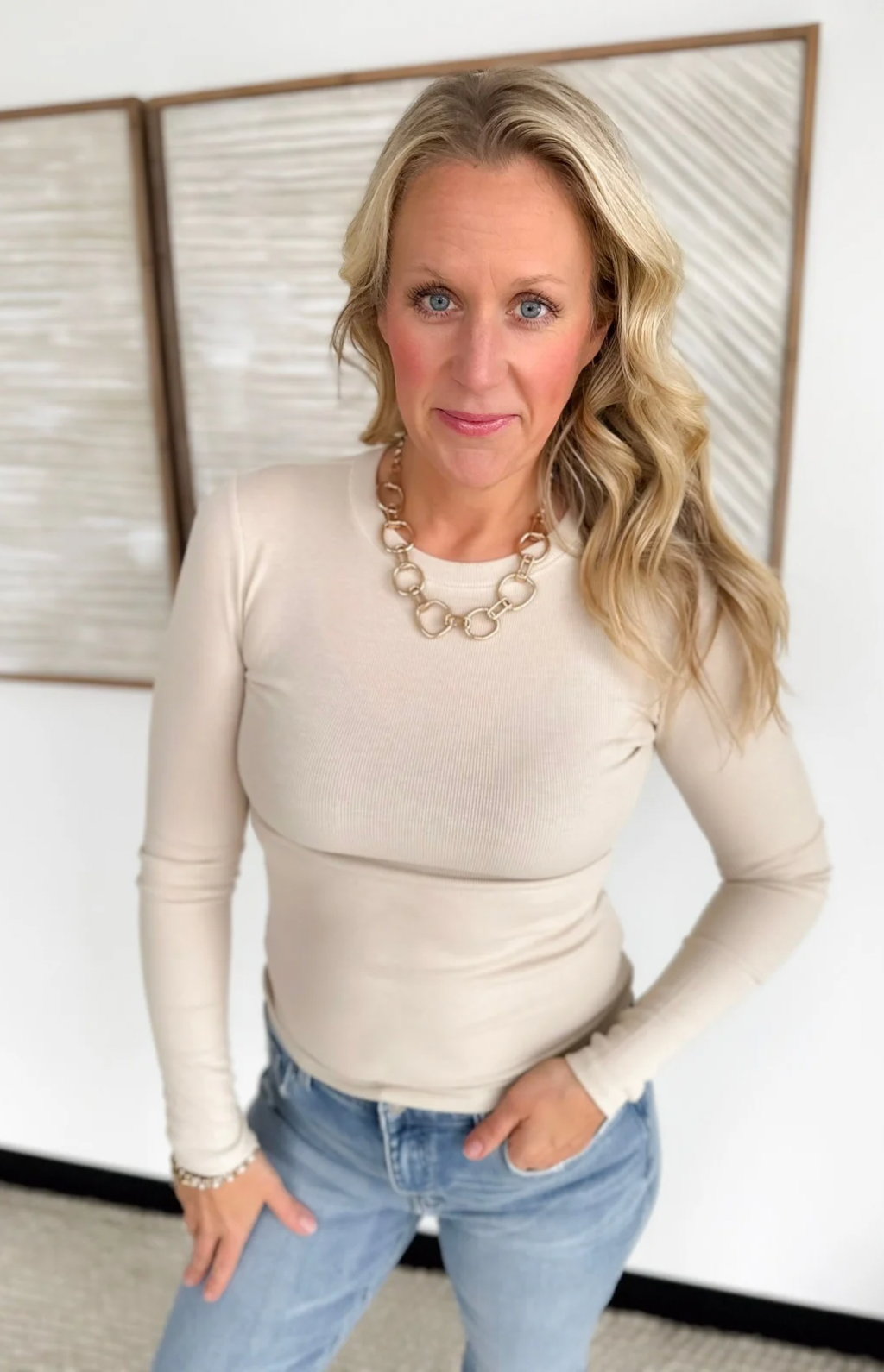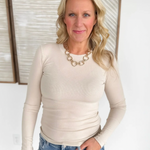 Fitted Round Neck Long Sleeve Top-Oatmeal