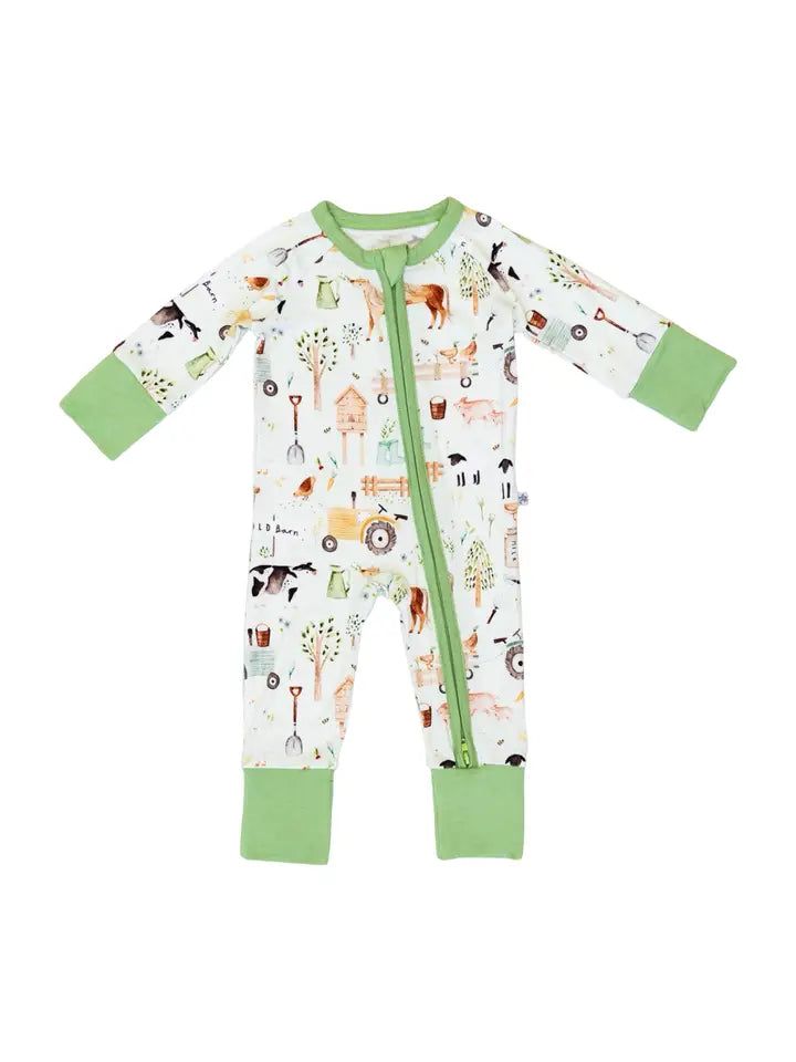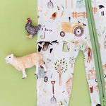 Wrap your little one in comfort and cuteness with our Friendly Farmers Bamboo Zipper Romper! Made from ultra-soft, breathable bamboo fabric, this adorable romper features an all-over farm animal print—perfect for little animal lovers.
