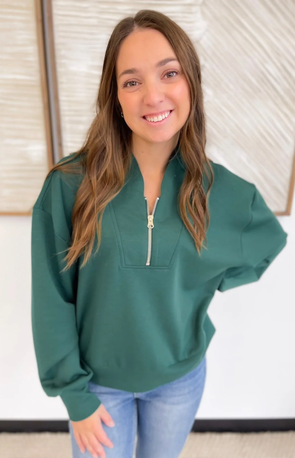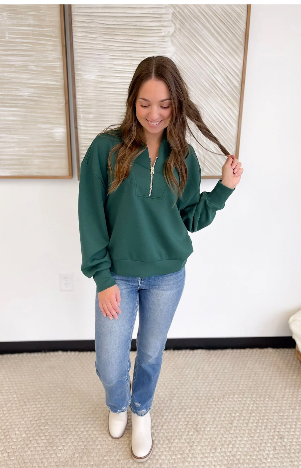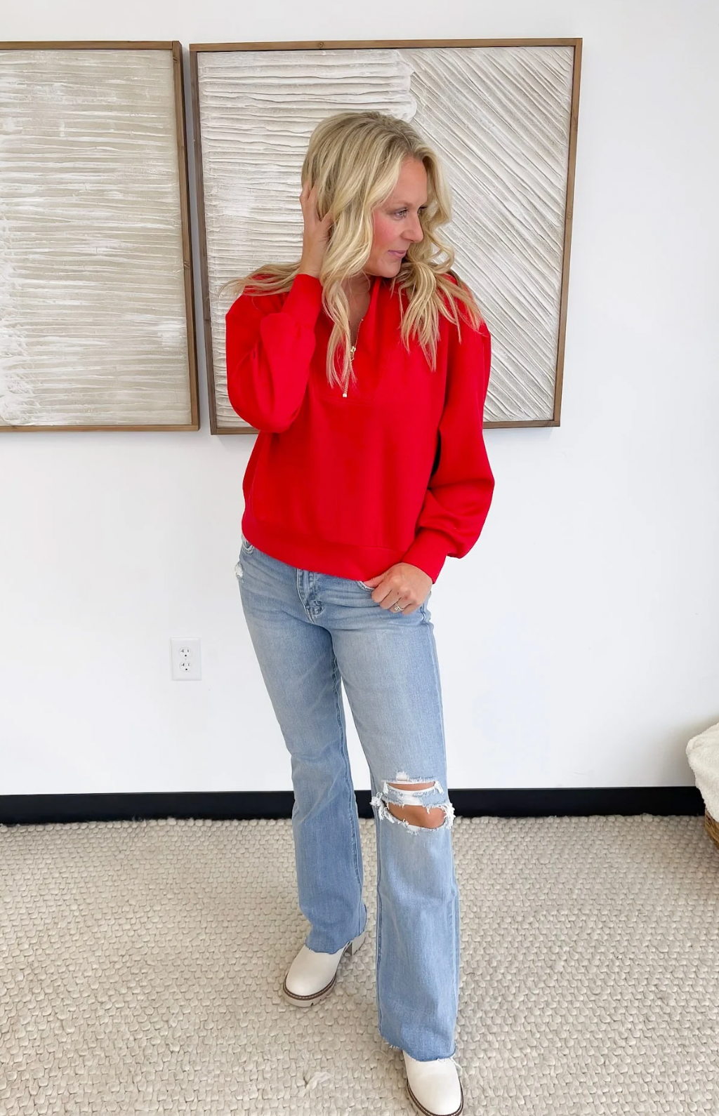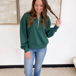 This half zip v-neck pullover is the perfect blend of casual comfort and everyday style. The half zip detail gives it a sporty edge while letting you adjust the neckline to your liking. Its soft, relaxed fit makes it easy to throw on with jeans, leggings, or joggers—ideal for busy days when you’re on the go. Cozy yet polished, this pullover is a no-fuss favorite you’ll reach for again and again.