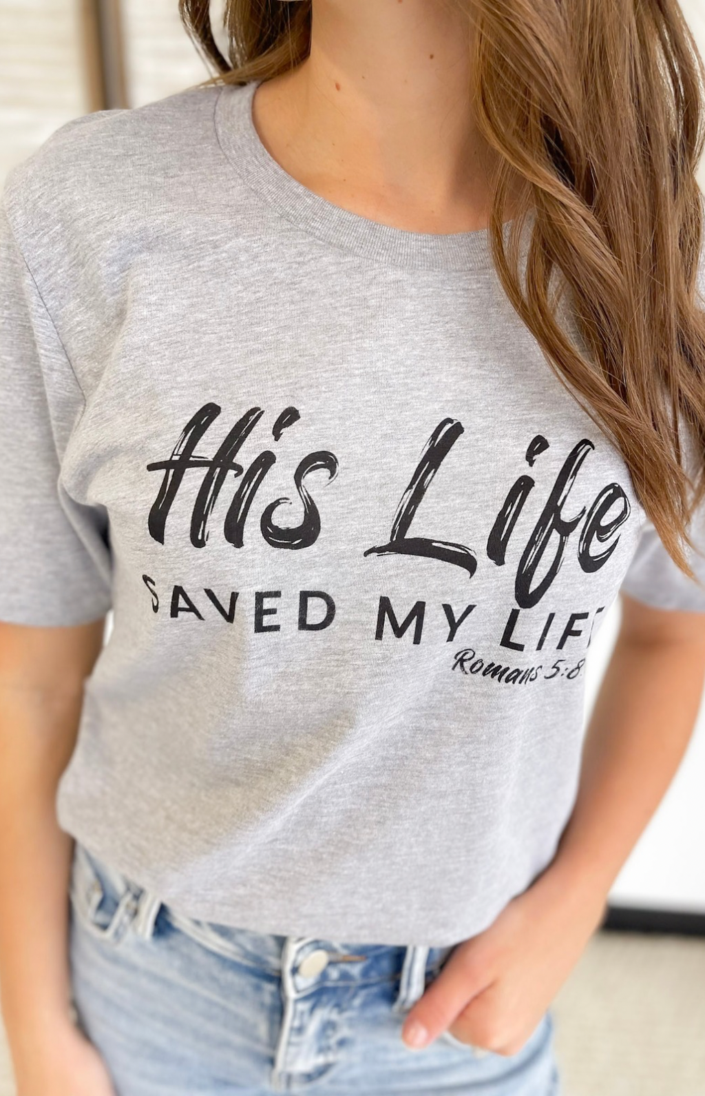 His Life Saved My Life. Romans 5:8 Graphic Tee