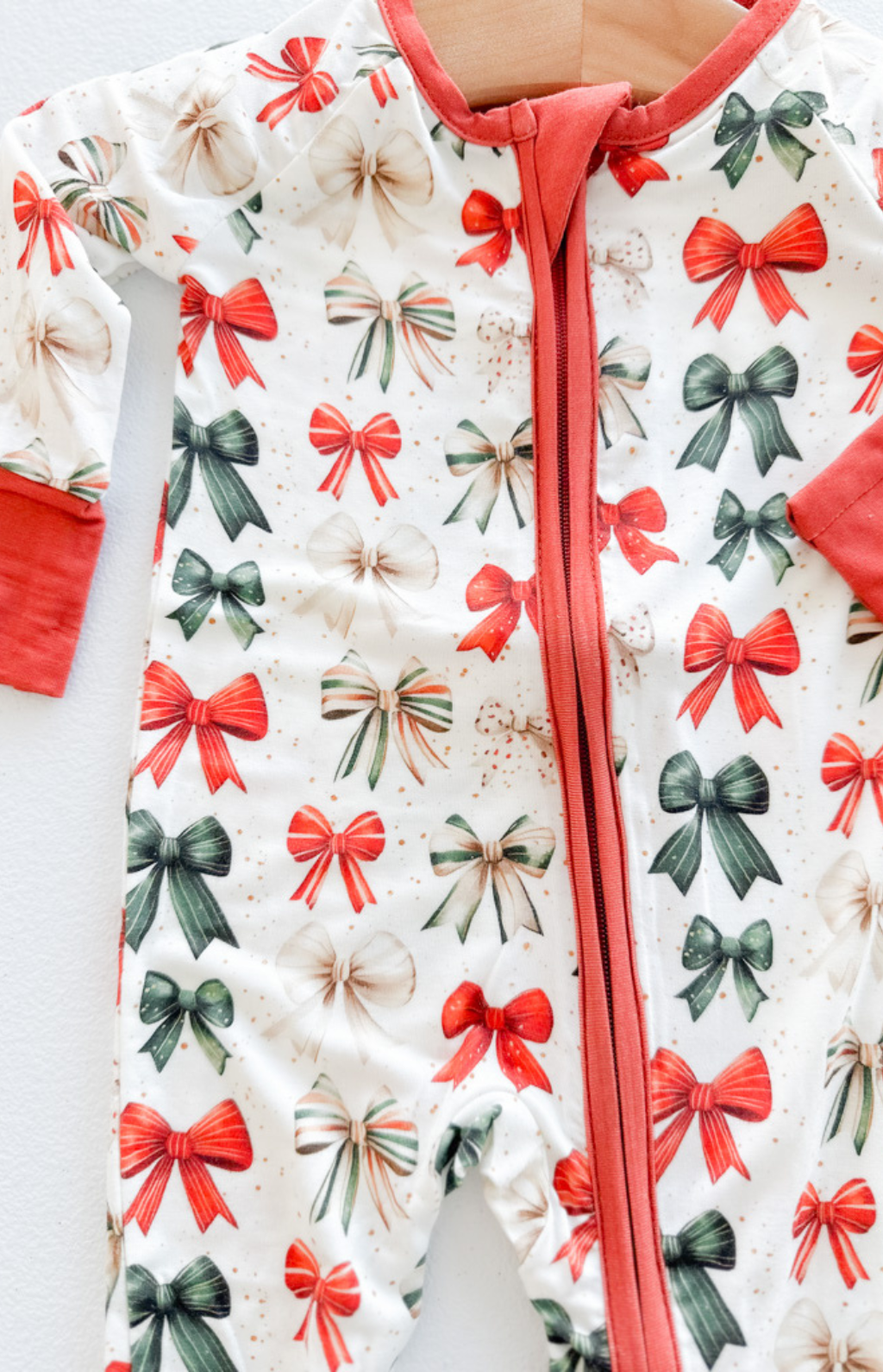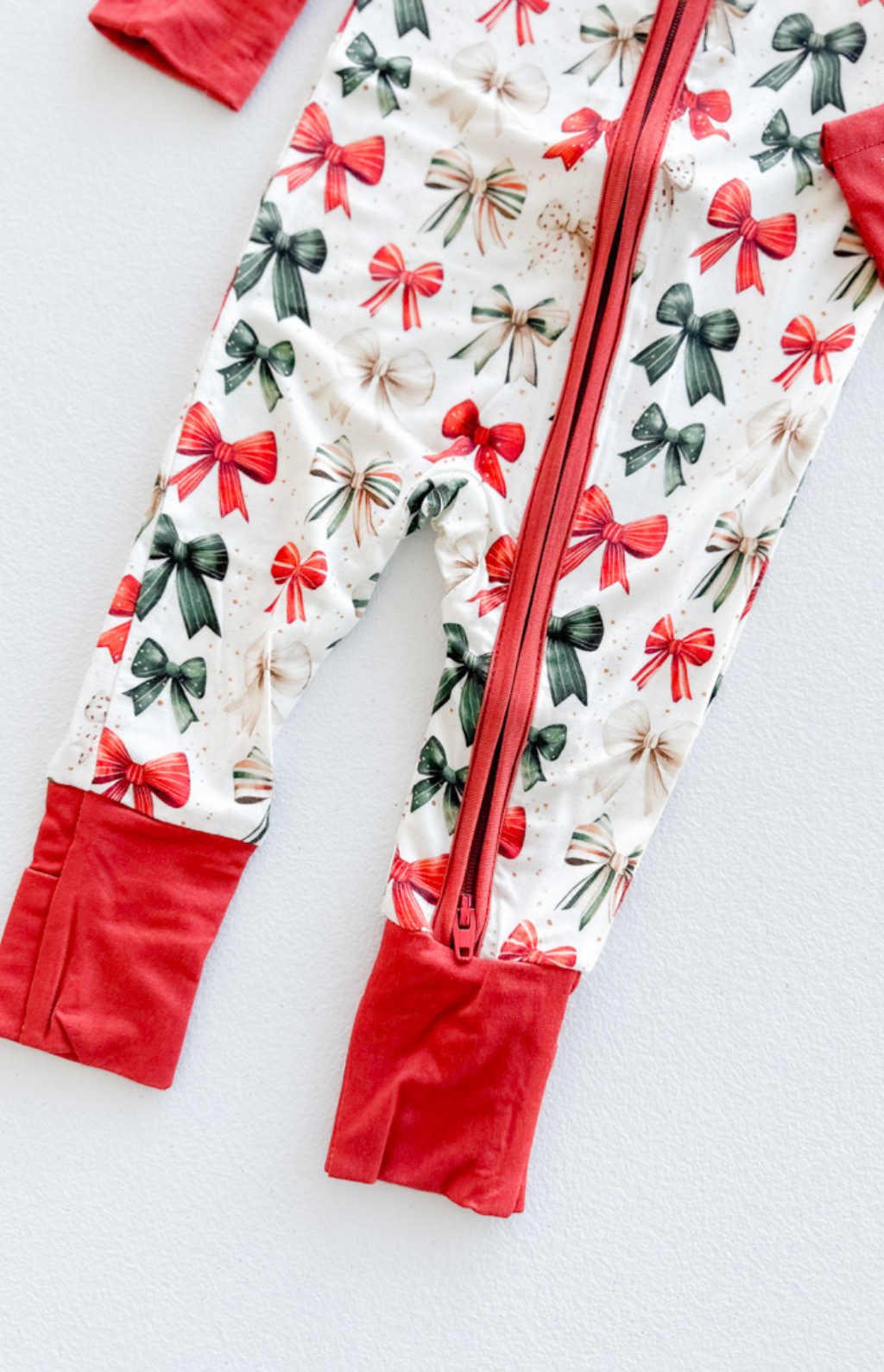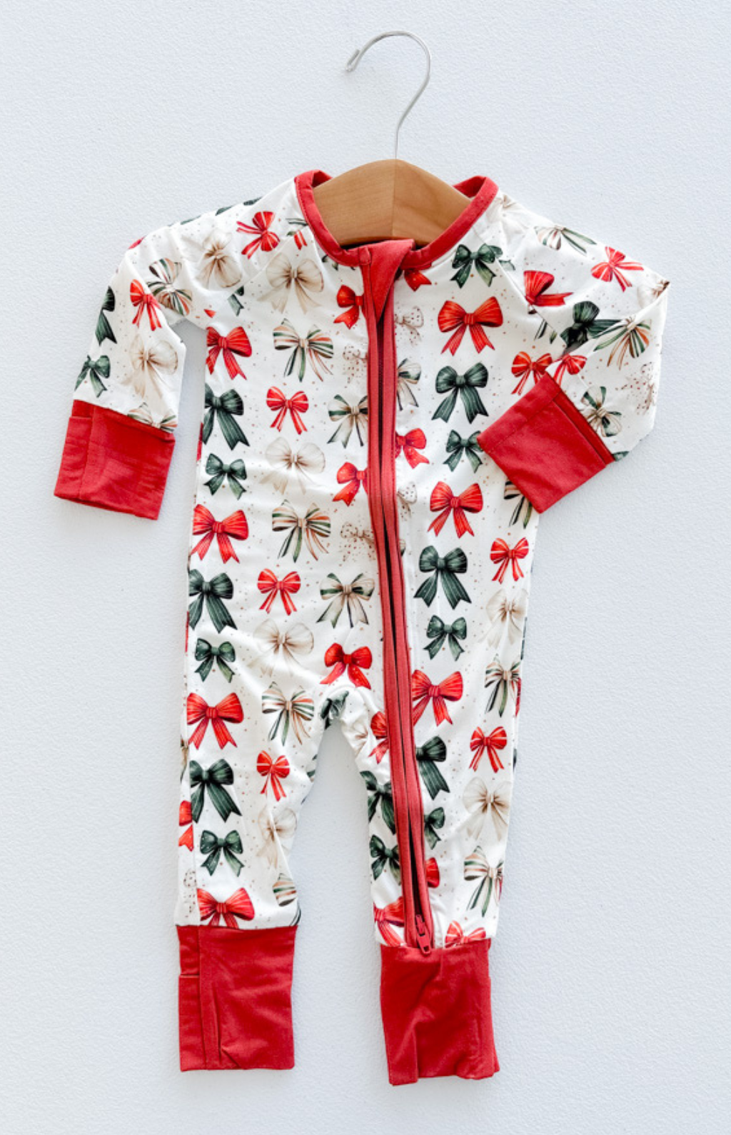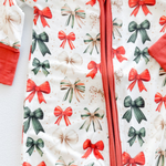 Wrap your little one in comfort and cuteness with our Holiday Bows Bamboo Zipper Romper! Made from ultra-soft, breathable bamboo fabric, this adorable romper features an all-over bow print—perfect for the holidays.