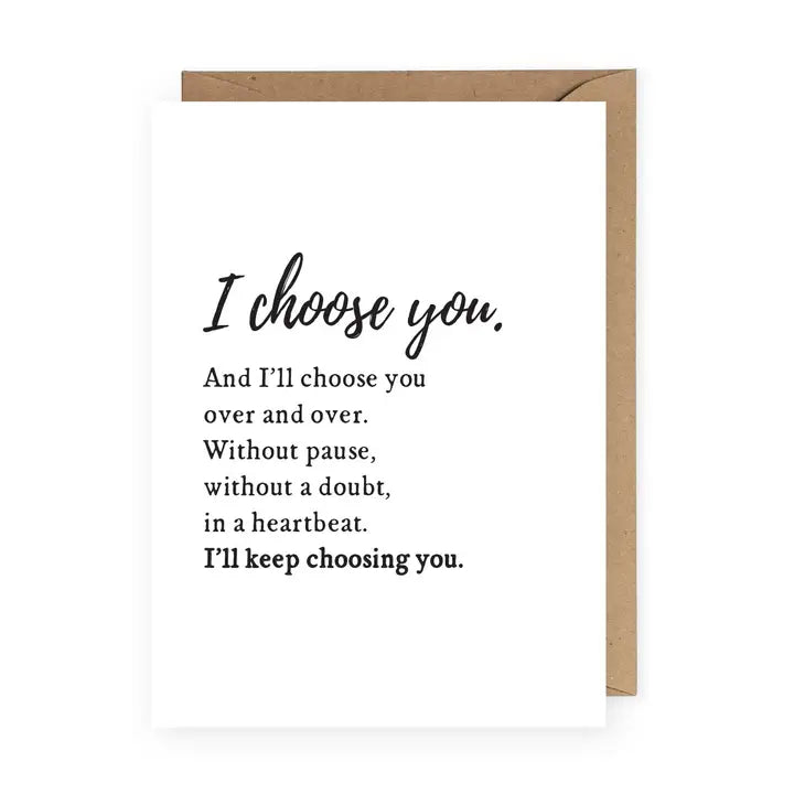 This card is perfect for the one you choose to love everyday. Say I love you to your husband or wife by saying I choose you — and choose this thoughtful card for your person.