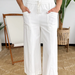 Ivory Elastic Waist Wide Leg Pants