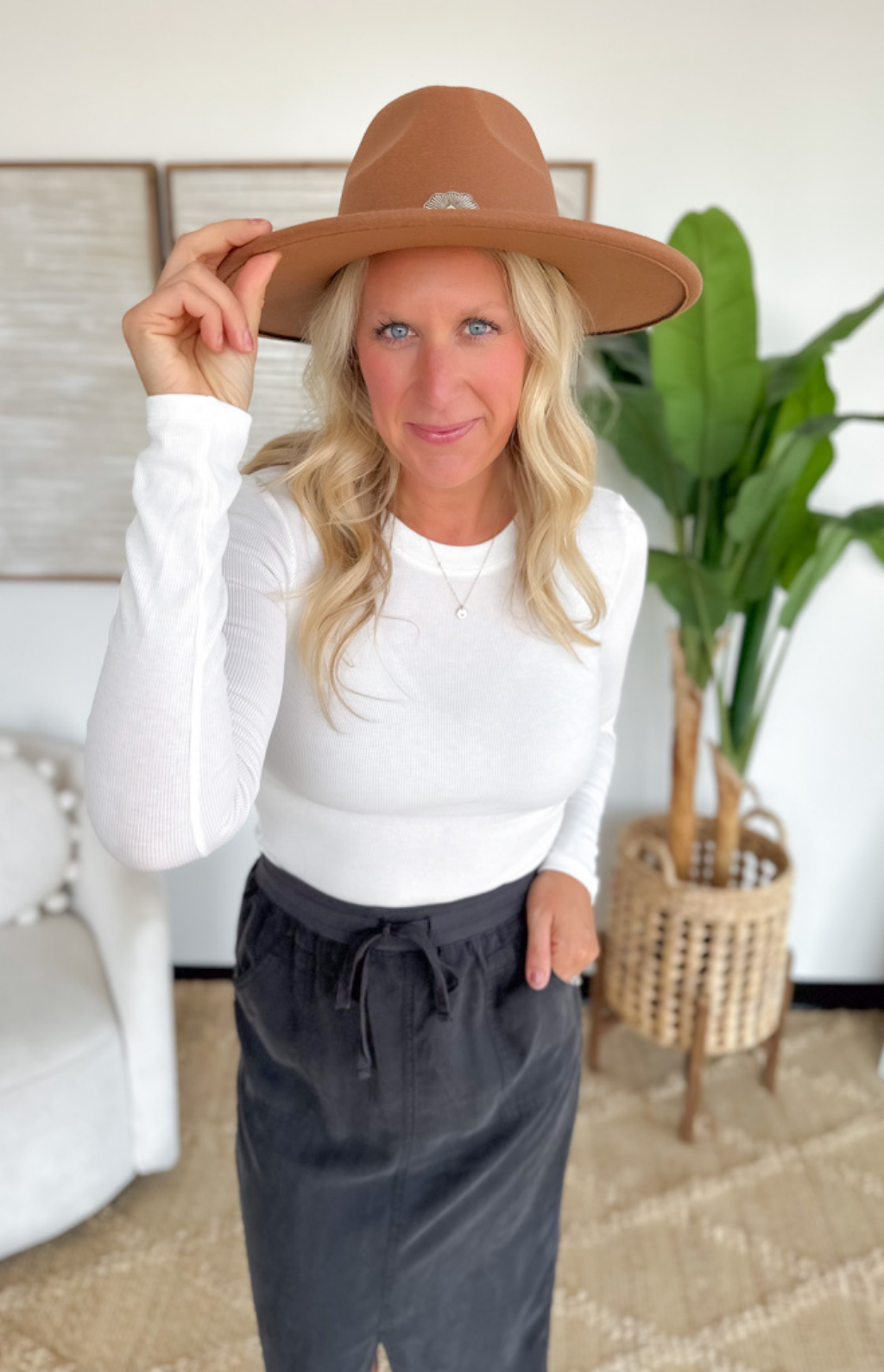 This round neck ribbed knit top is a wardrobe essential you’ll reach for on repeat. Designed with a fitted silhouette, it layers seamlessly under jackets or stands on its own for a sleek, polished look. The soft, stretchy knit moves with you while keeping its shape, making it perfect for both work and weekend wear. Available in classic ivory, it’s a versatile piece that works year-round.