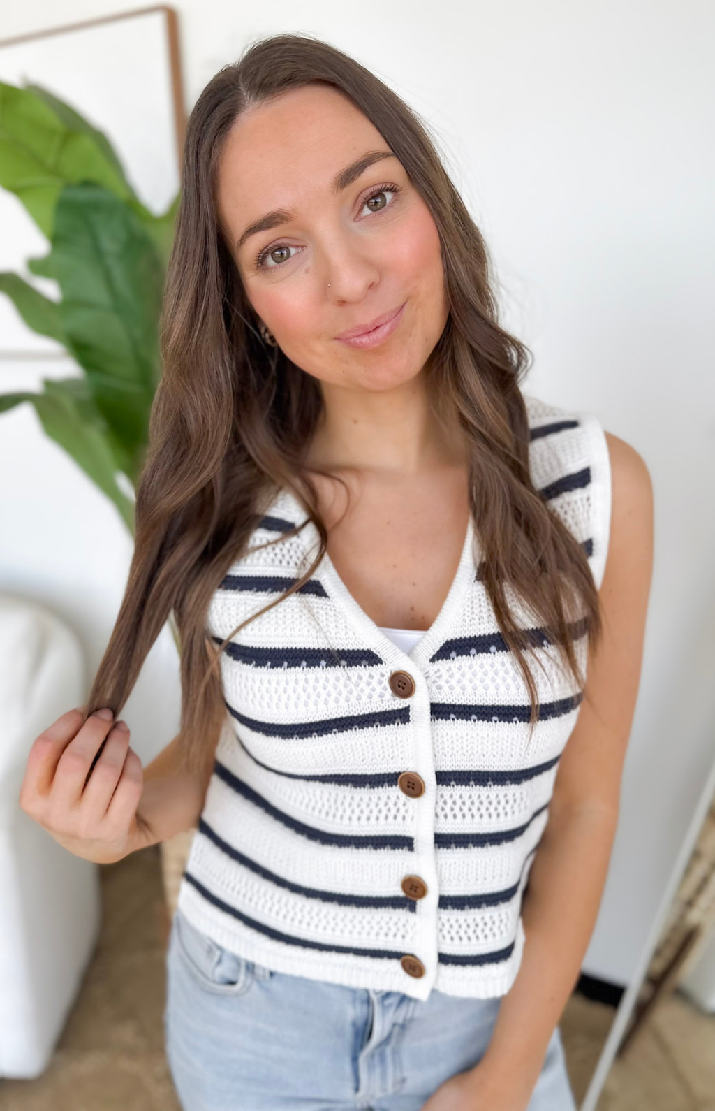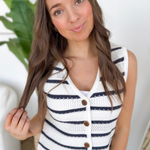 Ivory/Navy Striped Knit Button Sleeveless Top