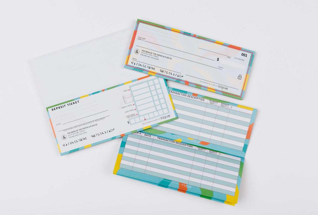 Unleash your child's financial genius with the Playtime Banking Bundle. With a pretend check book, deposit slips, and register, your little one can learn to manage money while using their imagination.