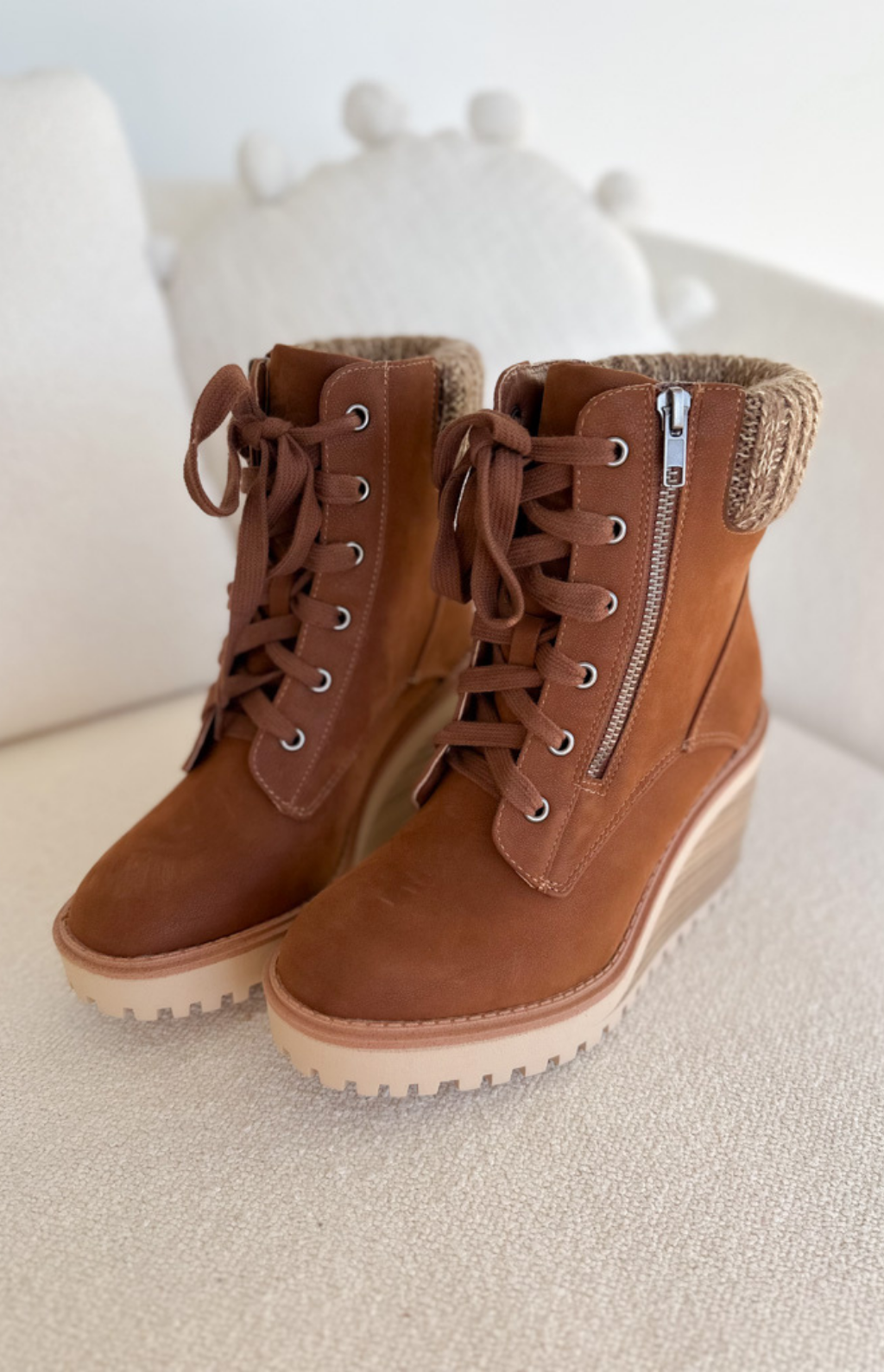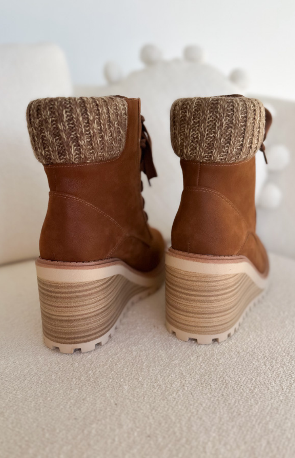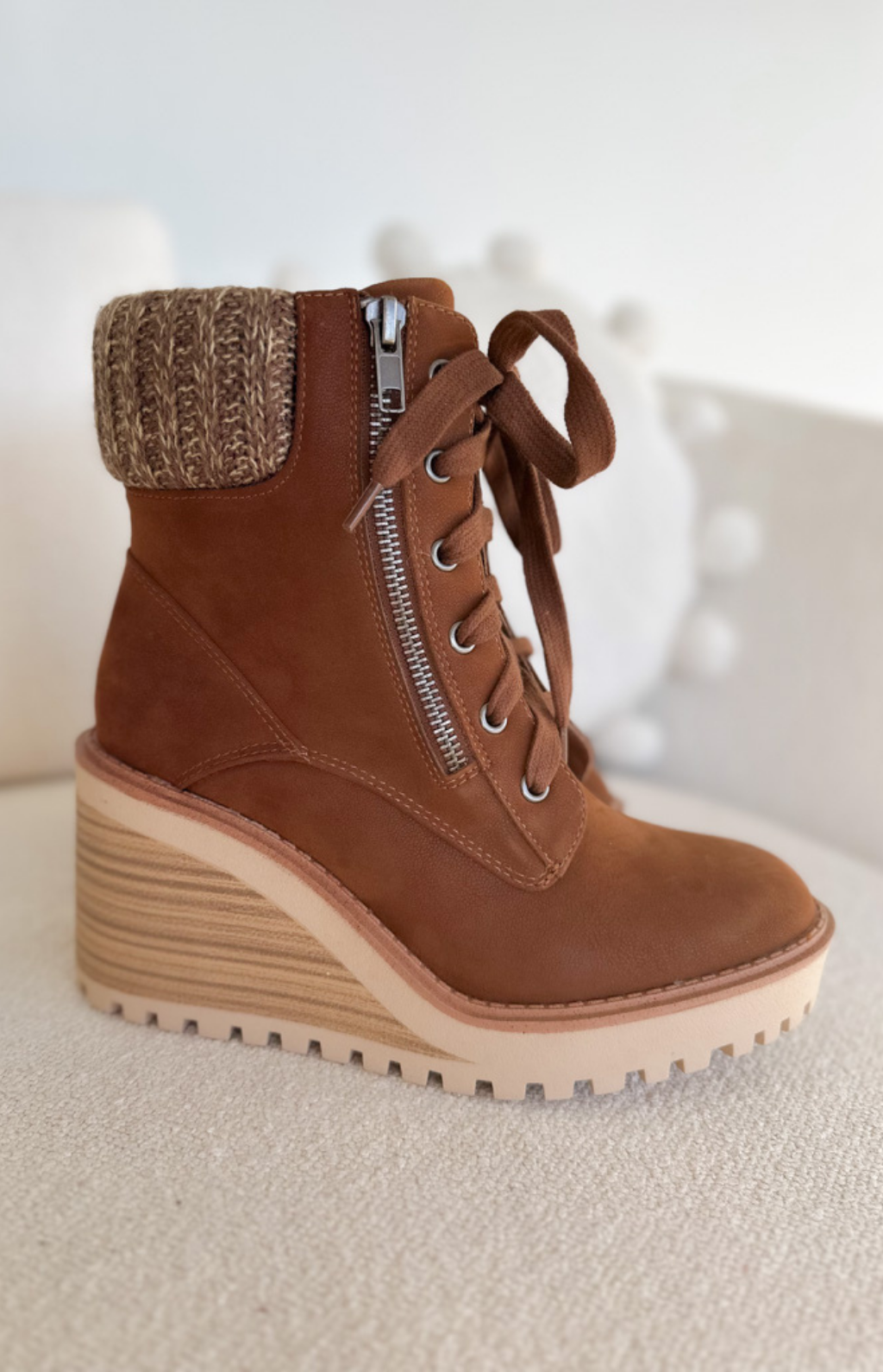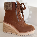 Step up your style with these brown lace-up wedge boots—where comfort meets effortless chic. The wedge heel gives you a subtle lift without sacrificing all-day wearability, while the lace-up design adds a touch of casual, on-trend flair. Crafted in a rich brown tone, they pair seamlessly with jeans, skirts, or leggings for a versatile look that transitions from errands to evenings out. Cushioned insoles keep your feet cozy, and the sturdy sole ensures you stay confident on the move. These boots are the perfect mix of stylish, practical, and easy-to-love.