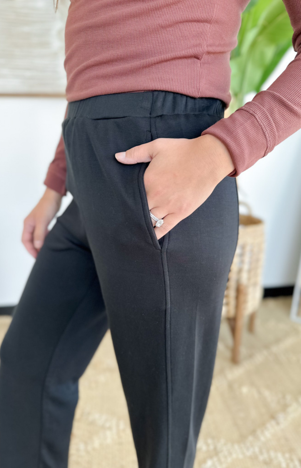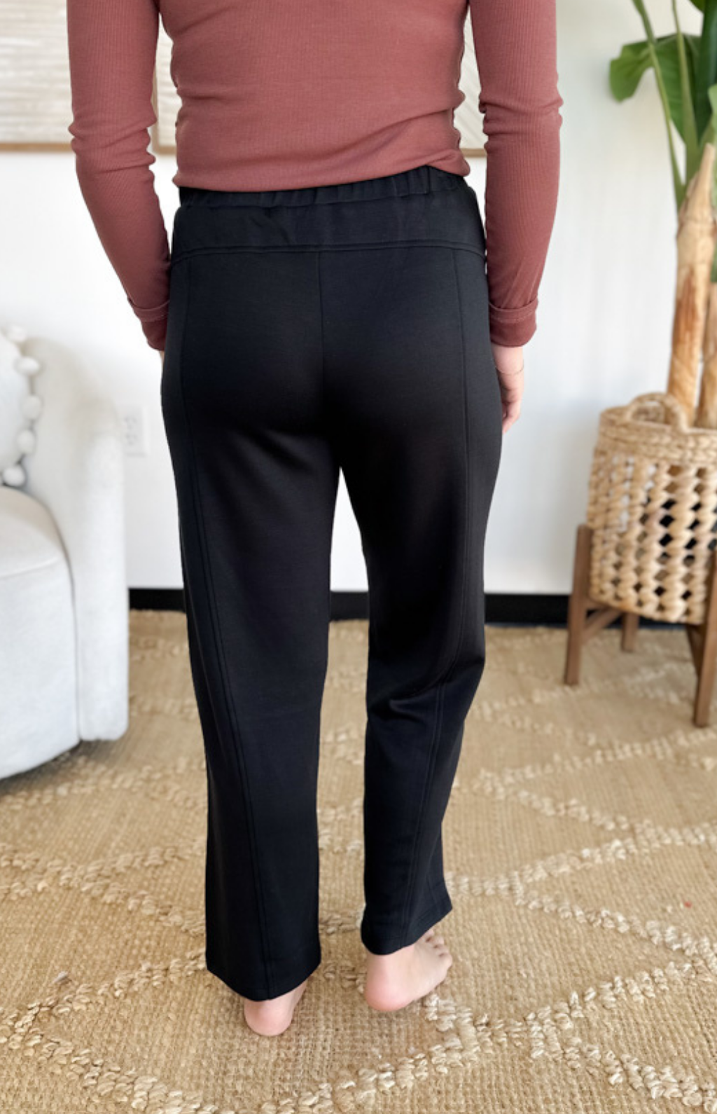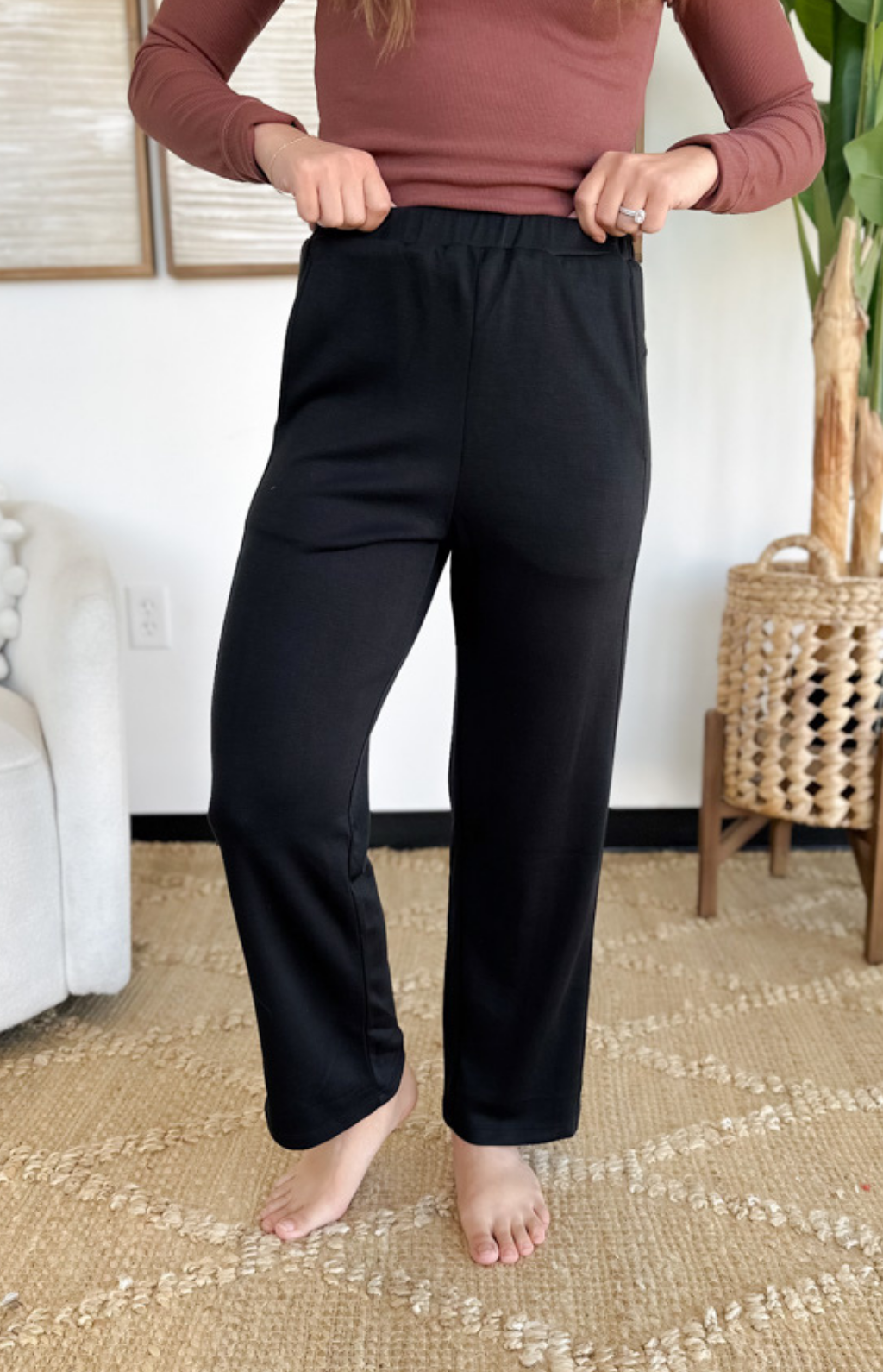 These elastic waistband pants are made for busy days when comfort and style both matter. The high waistband gives you a flattering, secure fit while the straight leg cut keeps the look sleek and versatile. With side pockets for that grab-and-go practicality, they’re as functional as they are easy to wear. Dress them up with a blouse for the office or keep it casual with a simple tee and sneakers. They’re the kind of pants you’ll reach for again and again—effortless, polished, and comfortable all at once.