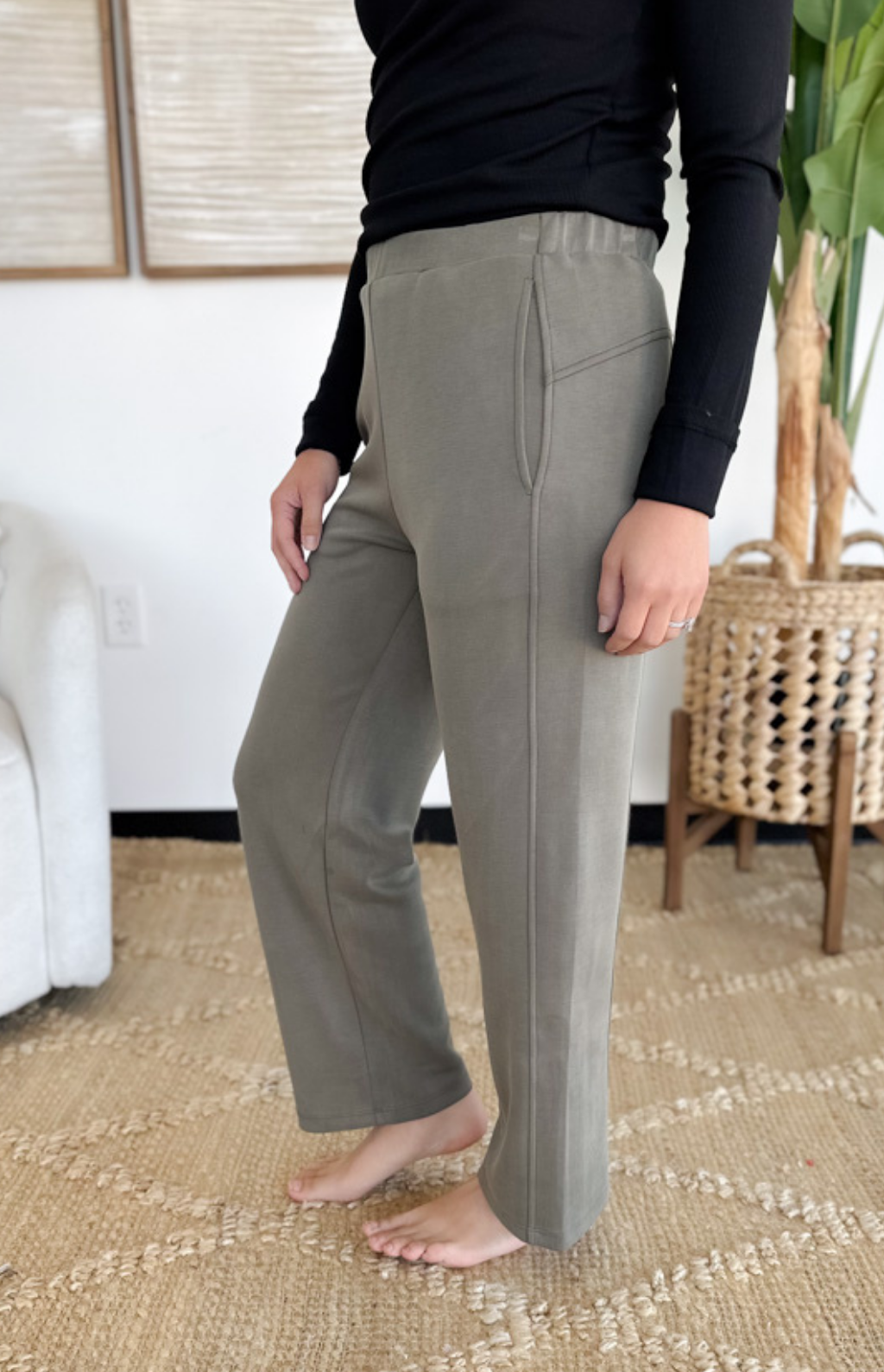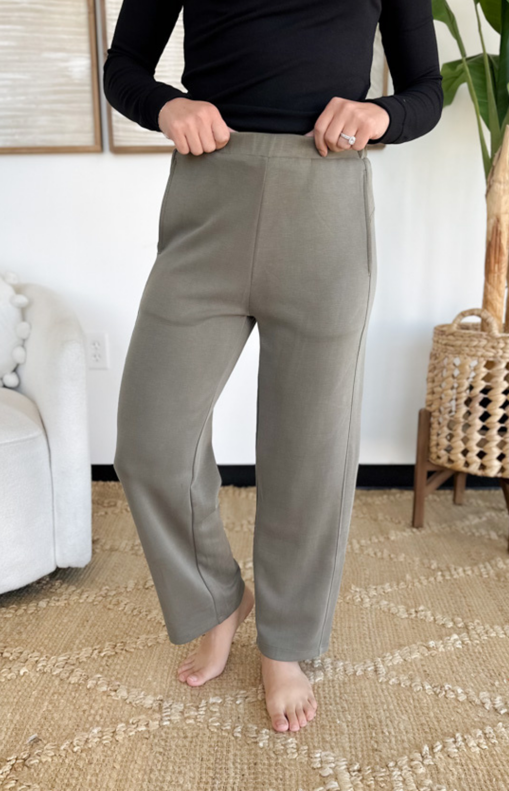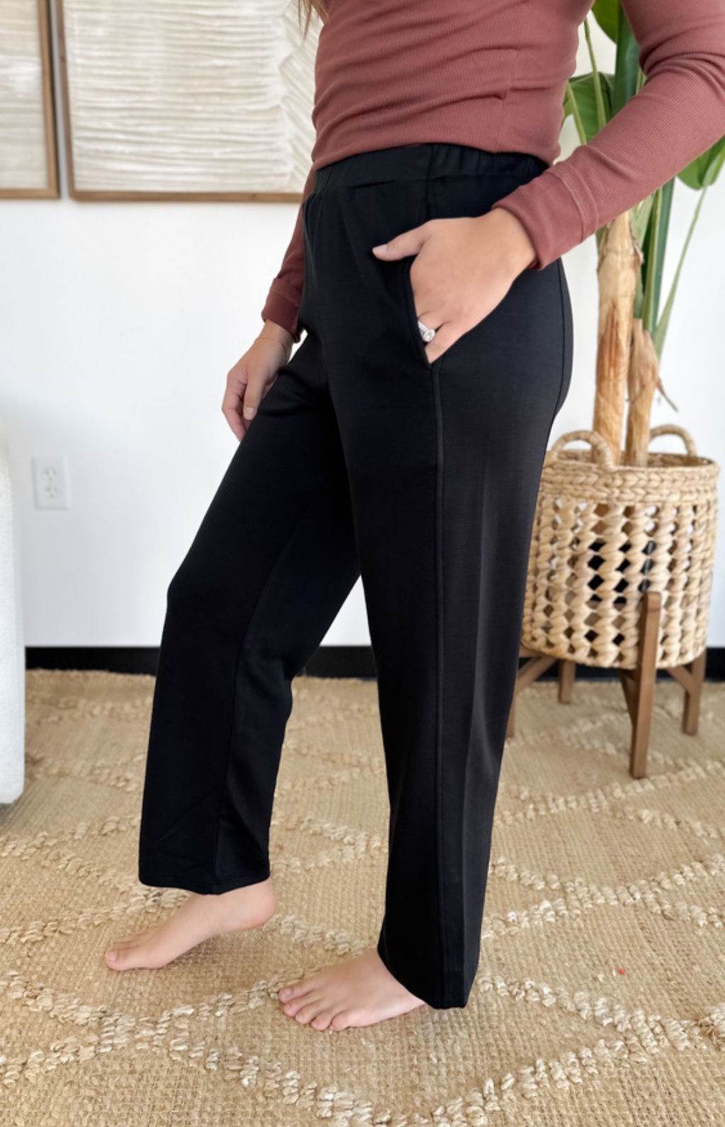 These elastic waistband pants are made for busy days when comfort and style both matter. The high waistband gives you a flattering, secure fit while the straight leg cut keeps the look sleek and versatile. With side pockets for that grab-and-go practicality, they’re as functional as they are easy to wear. Dress them up with a blouse for the office or keep it casual with a simple tee and sneakers. They’re the kind of pants you’ll reach for again and again—effortless, polished, and comfortable all at once.