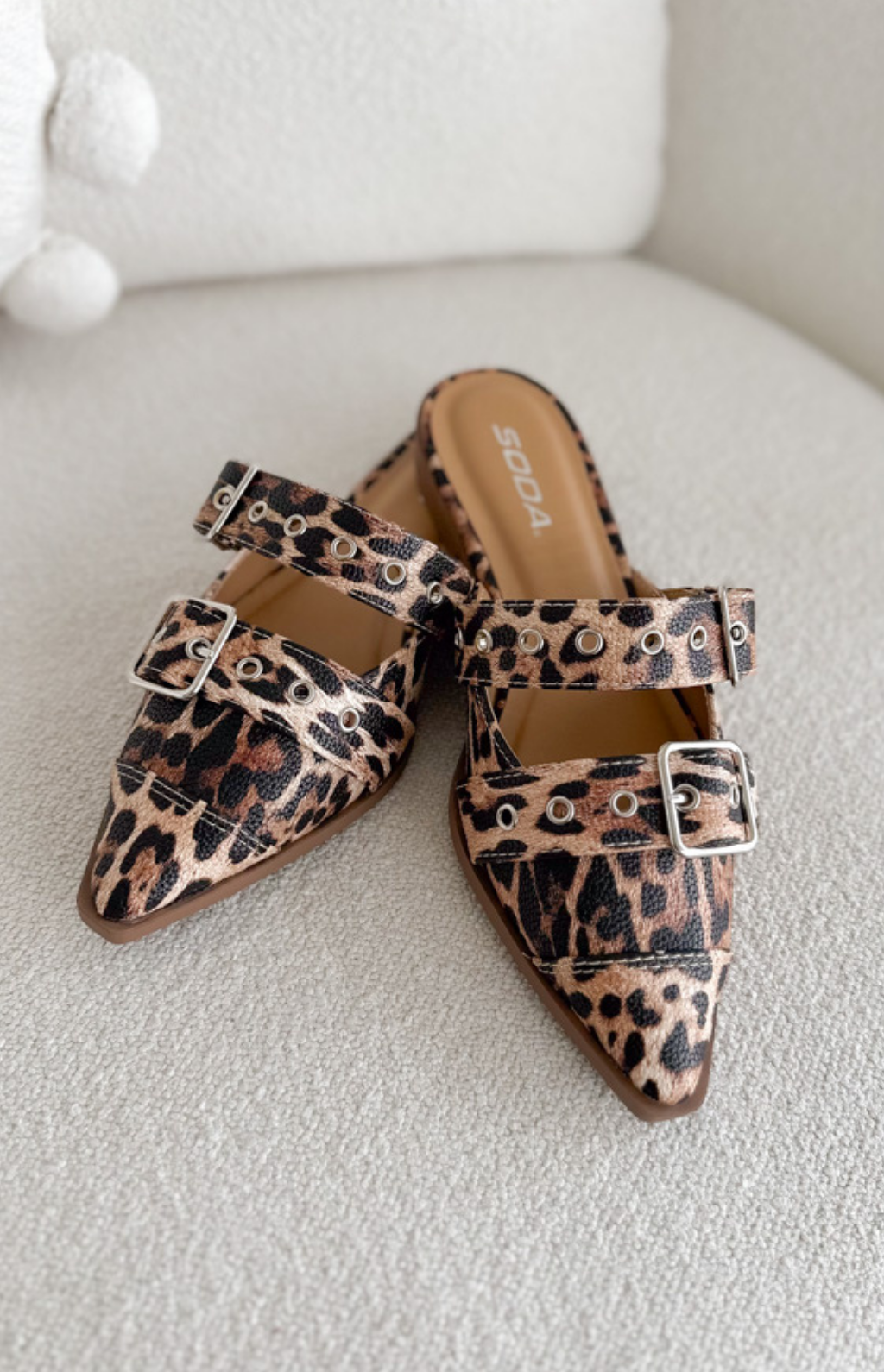 This leopard mule is the statement shoe your closet’s been waiting for. With a sleek pointed toe and double strap buckle detail, it strikes the perfect balance of bold and sophisticated. The slip-on style makes it effortless for busy mornings, while the leopard print adds that pop of personality to even the simplest outfit. Pair it with jeans, trousers, or dresses—this mule instantly elevates your look without trying too hard.