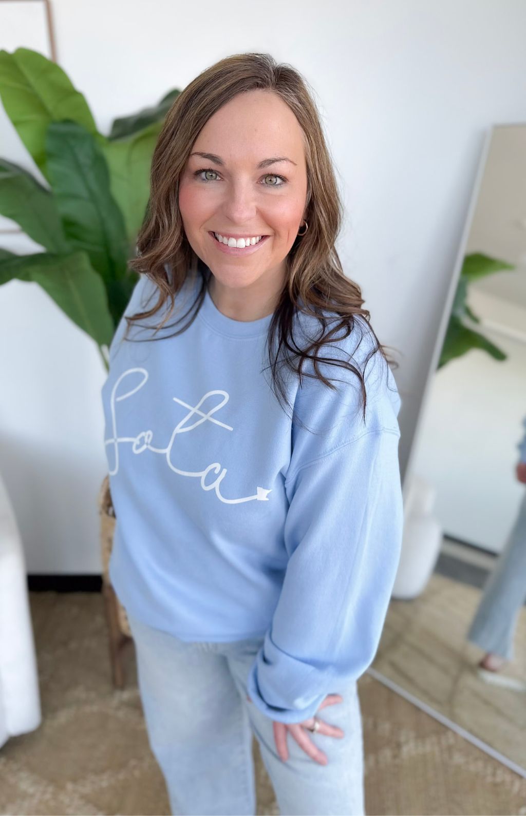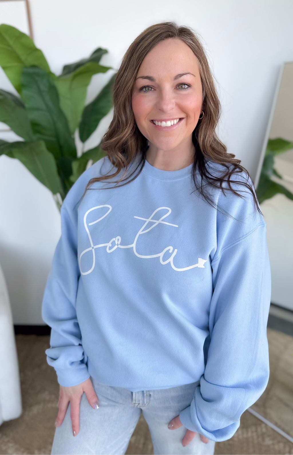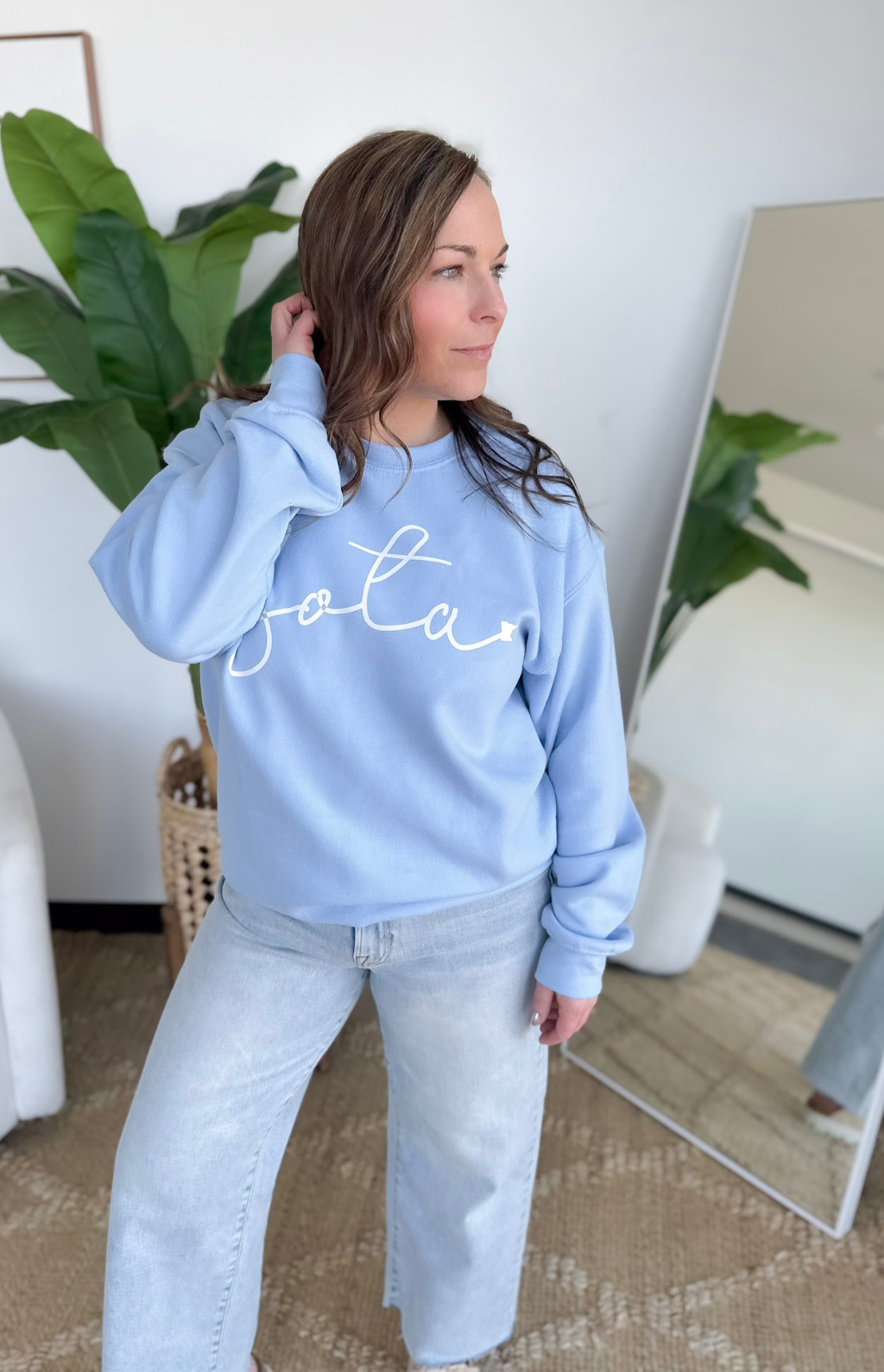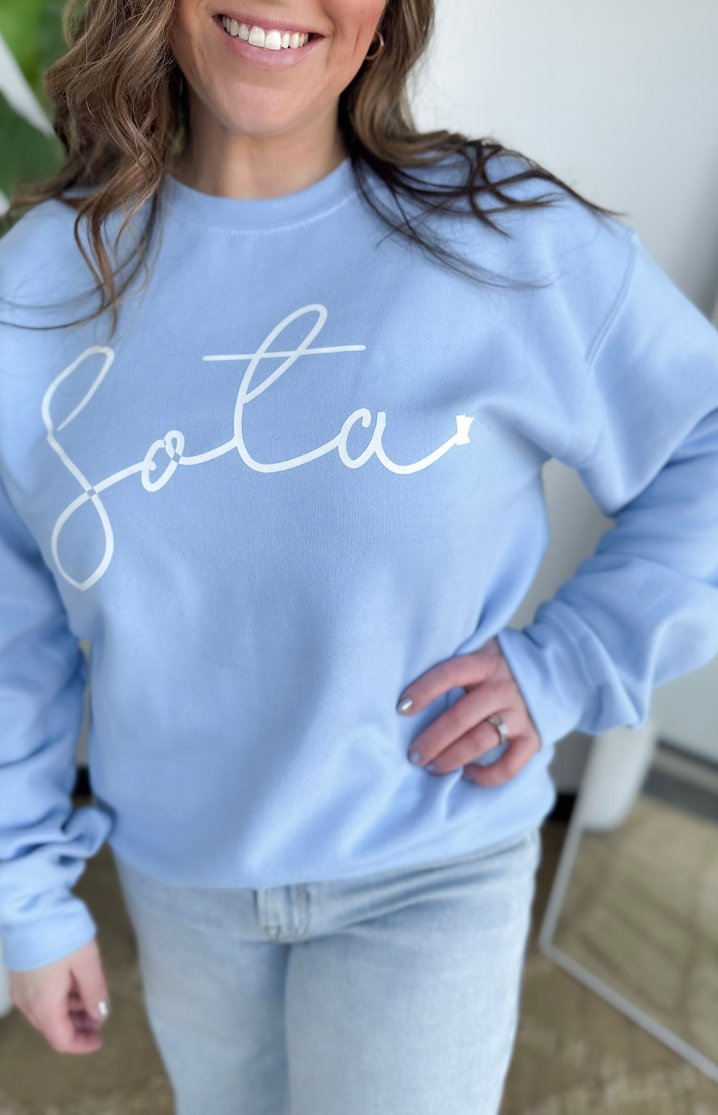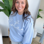 This light blue Sota crewneck sweatshirt is the perfect throw-on layer for summer days and cool nights. The soft, lightweight feel keeps it comfy without feeling heavy, making it ideal for lake days, bonfires, travel, and evenings on the patio. The fresh light blue color feels calm, clean, and easy to style with denim shorts, leggings, or jeans.