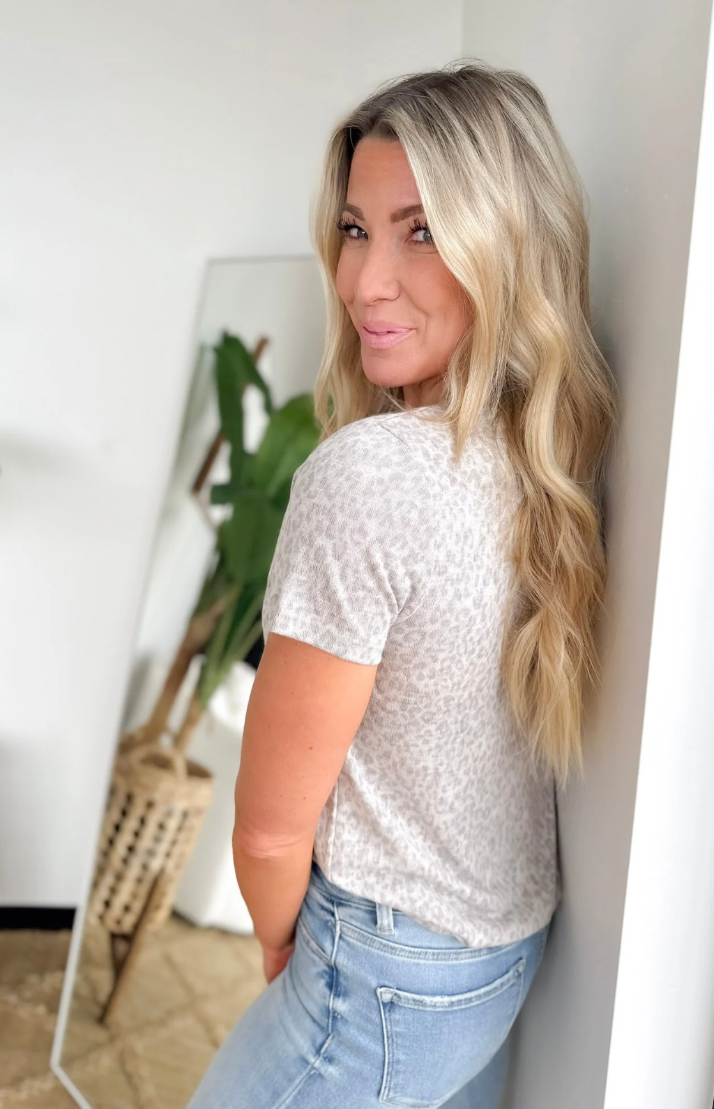 This lightweight knit muted leopard print top is the perfect way to add a little personality to your everyday look. The soft, breathable fabric keeps it comfortable for all-day wear, while the subtle leopard print feels neutral and easy to style. Short sleeves make it a great option for layering now or wearing on its own as the seasons change.