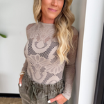 Add a pop of playful sophistication to your look with this floral mesh long sleeve mock neck top. Lightweight and slightly sheer, it layers beautifully and brings a touch of drama with its fitted silhouette and delicate floral pattern. Available in three dreamy shades—caramel for a warm, earthy glow, pink with red undertones for a romantic pop, and ash mauve for an effortlessly cool neutral. Style it under overalls, pair it with high-rise jeans, or tuck it into a midi skirt for a look that’s uniquely you and made to stand out.