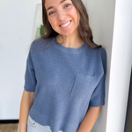 Mini Waffle Knit Blue Short Sleeve Top