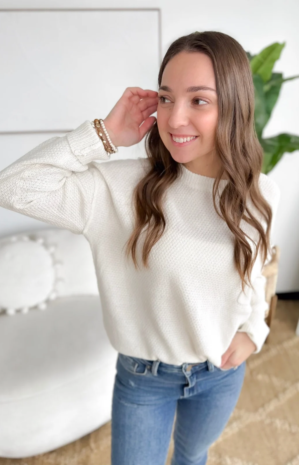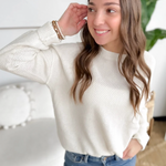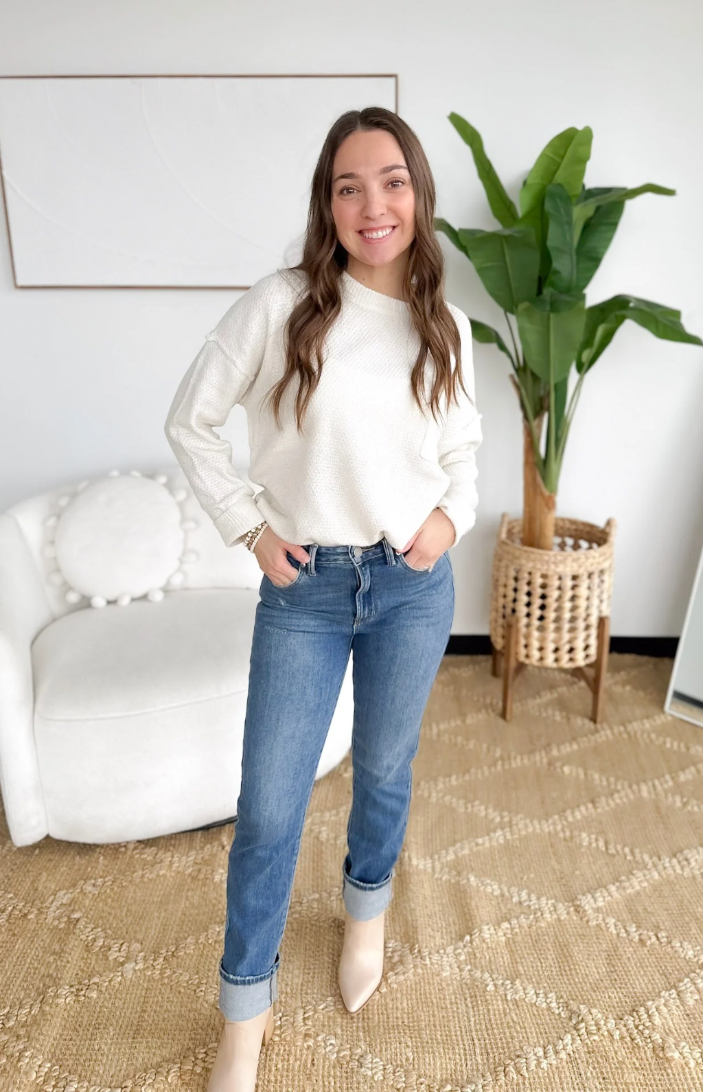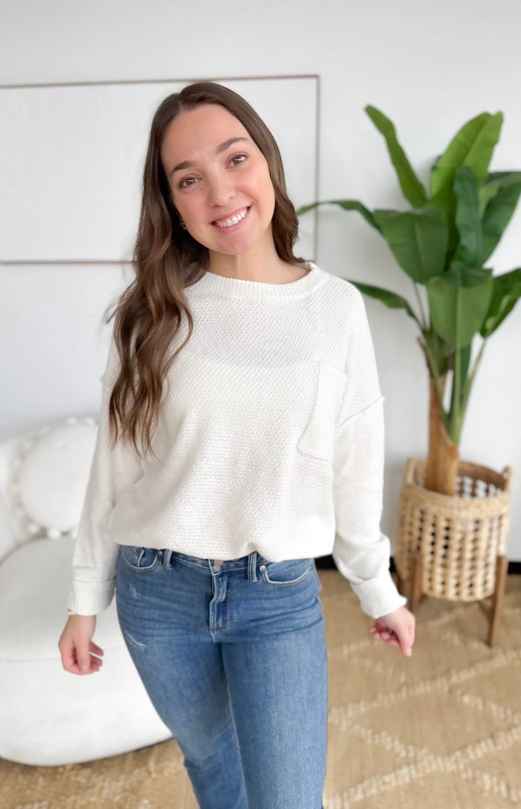 This mini waffle textured cream top is the perfect lightweight layer for everyday wear. The soft waffle fabric adds just enough texture while keeping it breathable and comfortable. A classic crew neckline and long sleeves make it easy to wear on its own or layered, and the chest pocket adds a casual, lived-in touch.