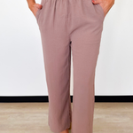 These mocha lightweight wide leg pants are the perfect blend of comfort and polish. Designed with a flattering elastic waistband and functional pockets, they’re made for busy days when you still want to look put together. The airy fabric and flowy wide leg silhouette keep them comfortable and easy to move in all day long.