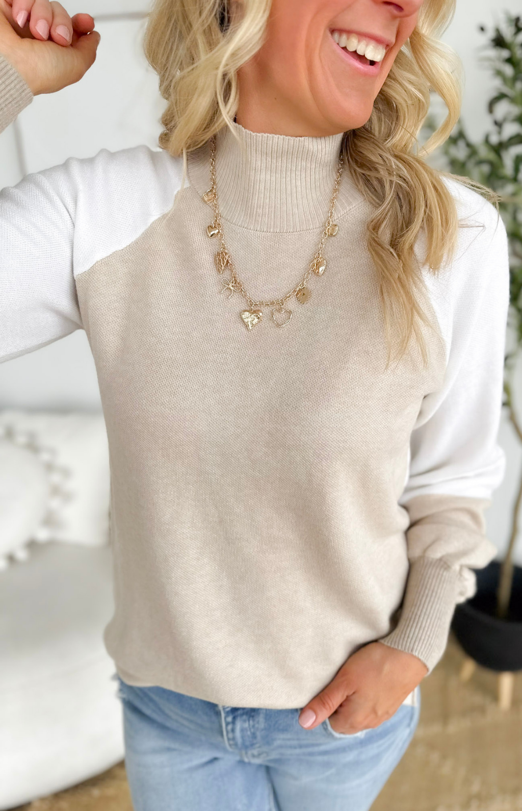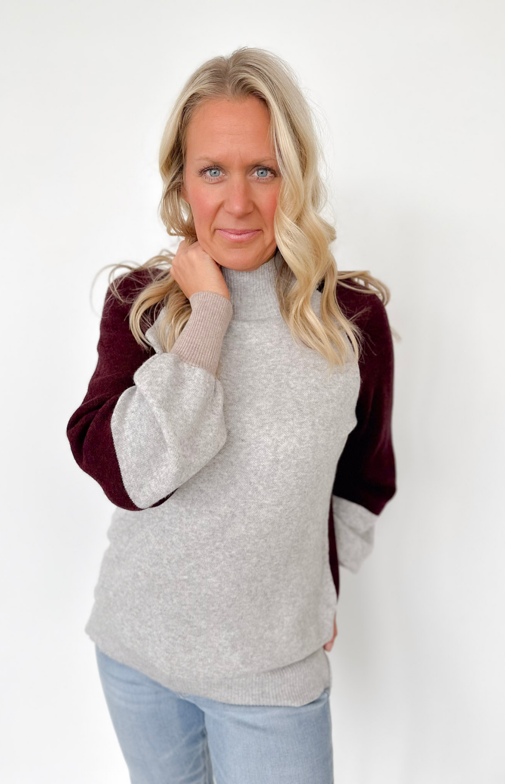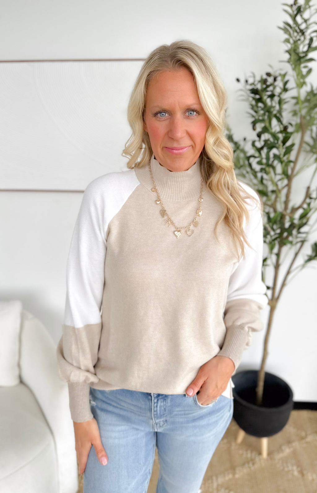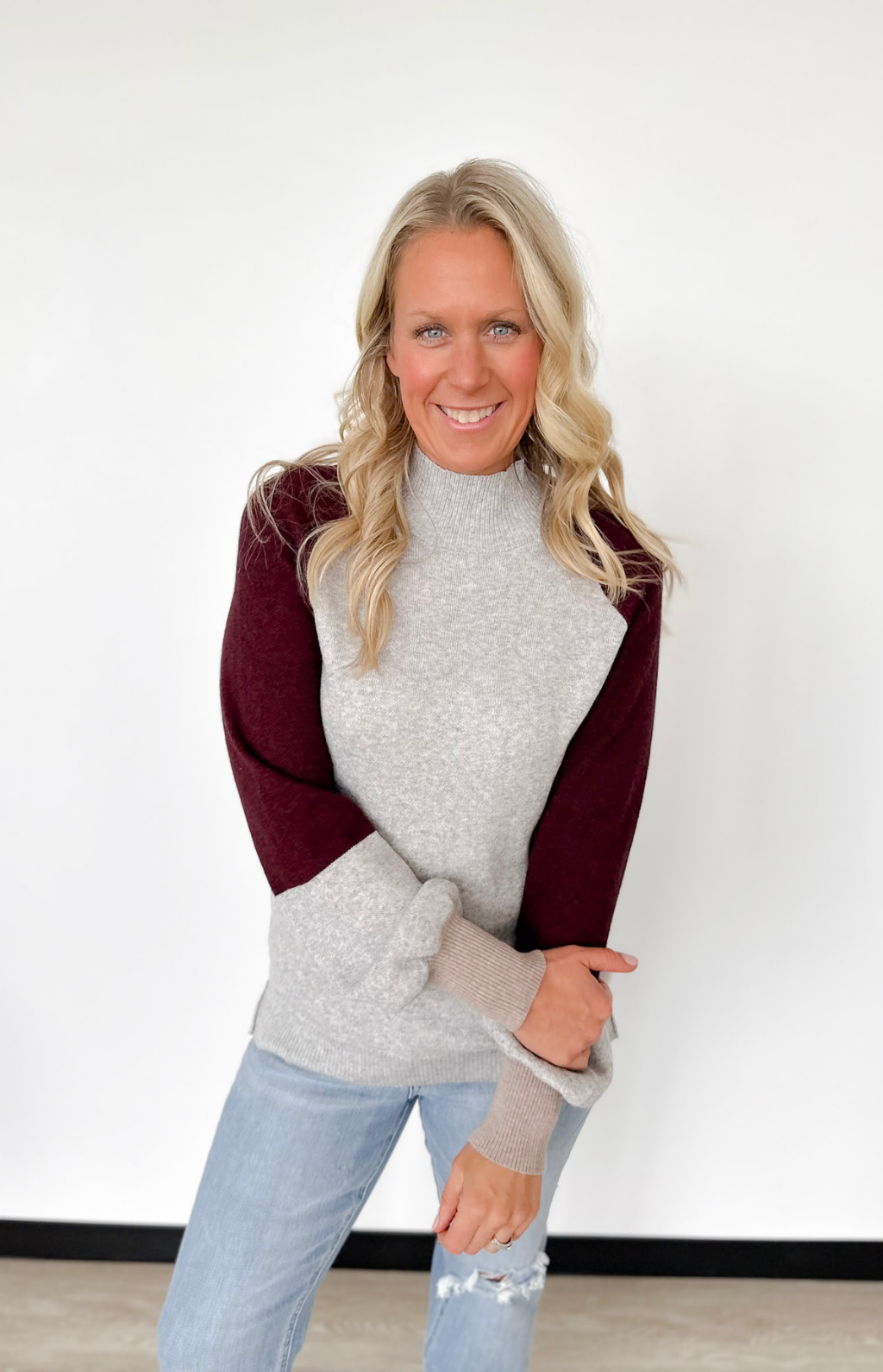 This mock-neck color block sweater is such an easy win for your wardrobe. The lightweight knit keeps it breathable and comfy, while the clean mock neckline gives it that polished, pulled-together look with zero effort. The color blocking adds just the right pop of style—fun but still totally wearable for everyday. It’s perfect for those busy mornings when you need to look cute fast, whether you’re heading into work or running kids around. Throw it on with jeans and you’re instantly set.