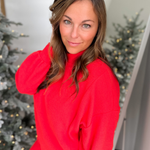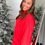 Mock Neck Relaxed Long Sleeve Pullover-Red