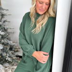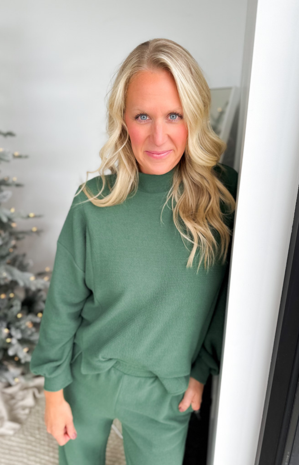 Mock Neck Relaxed Long Sleeve Pullover-Green