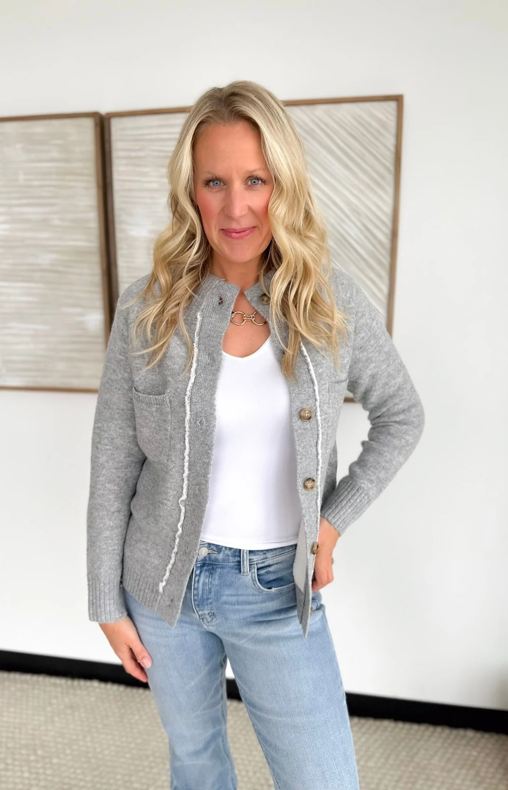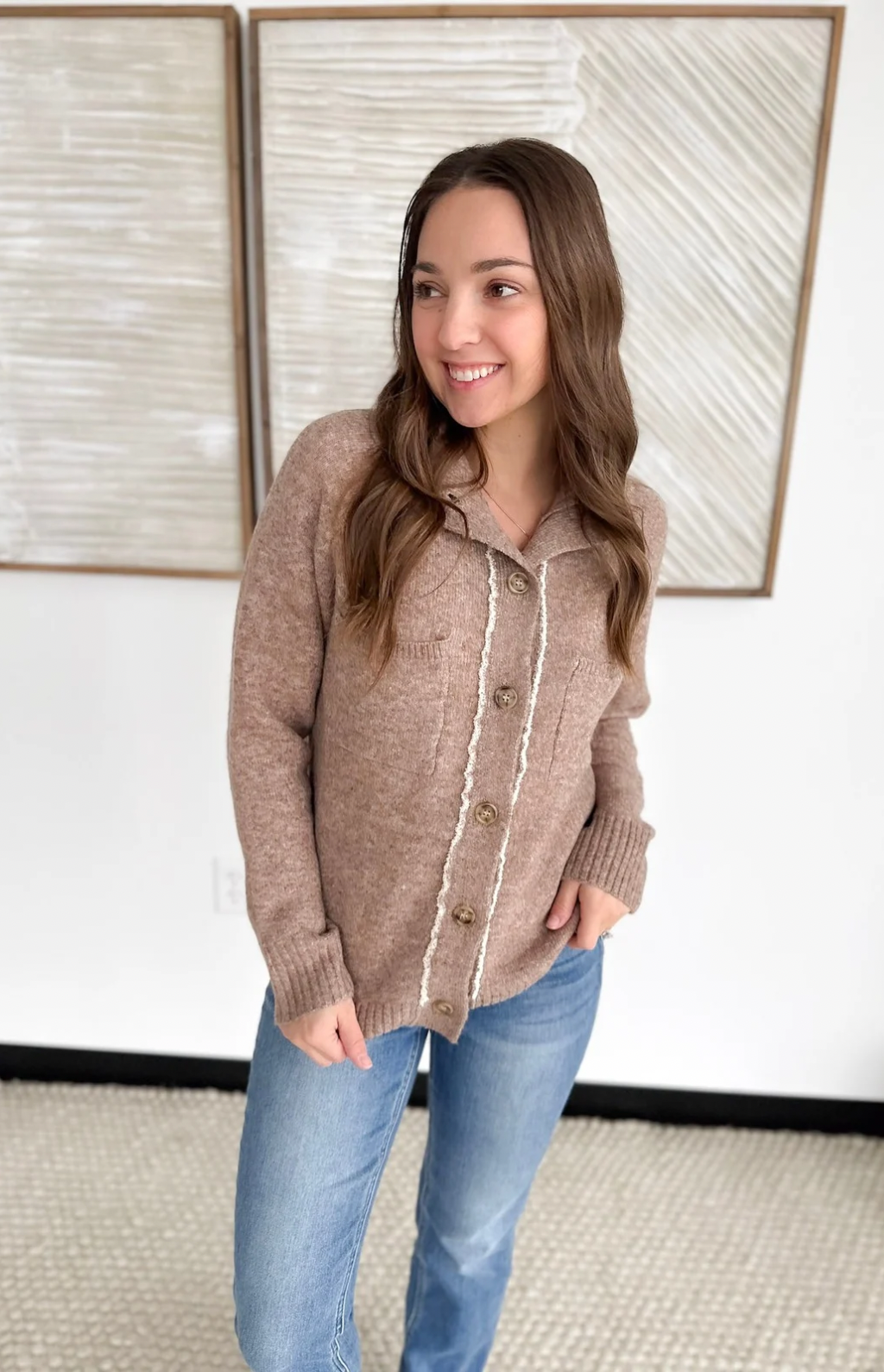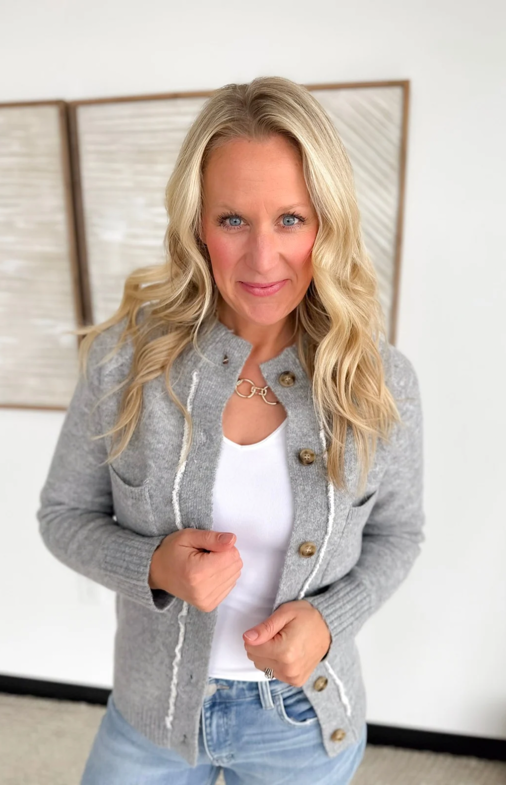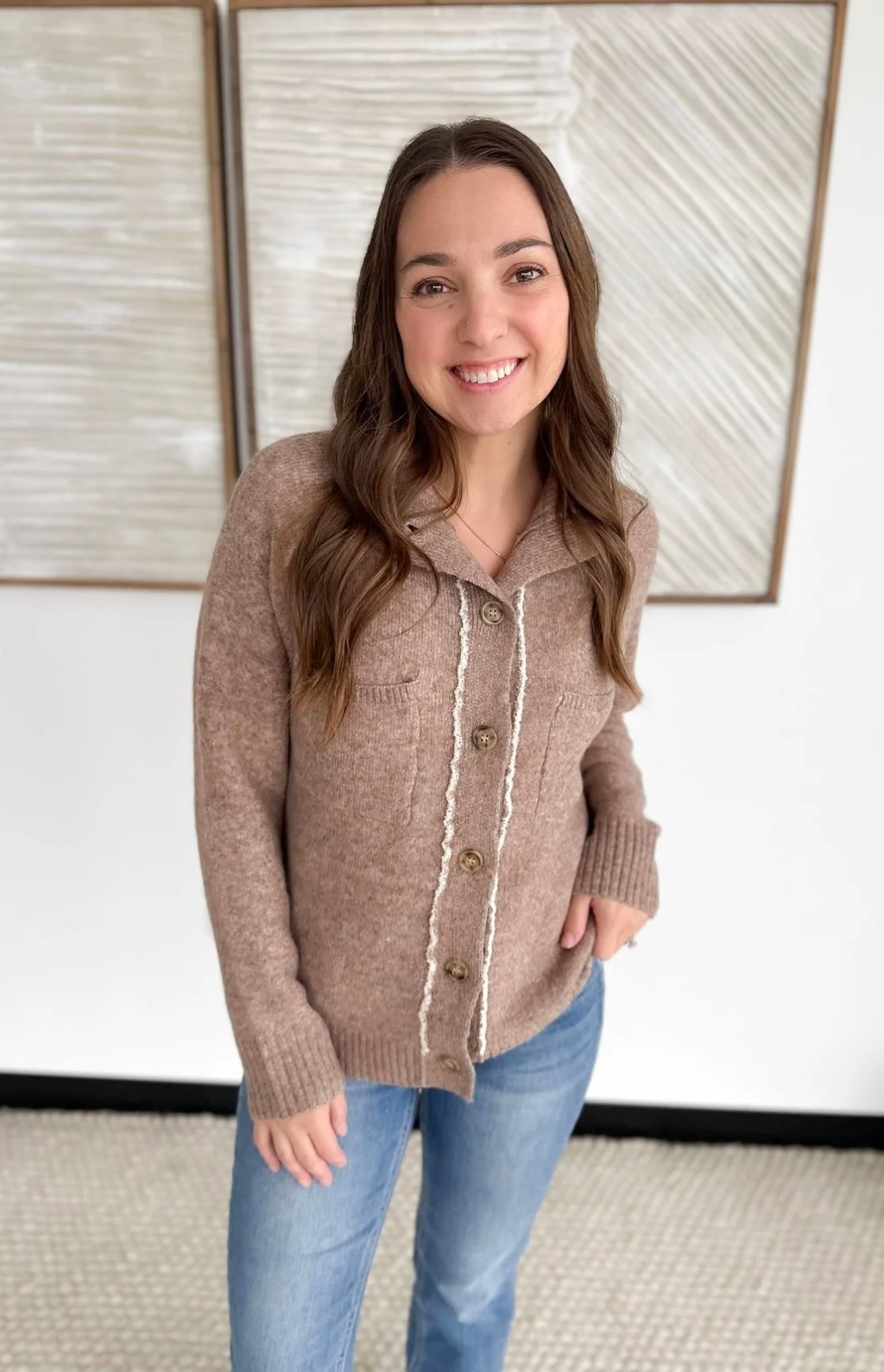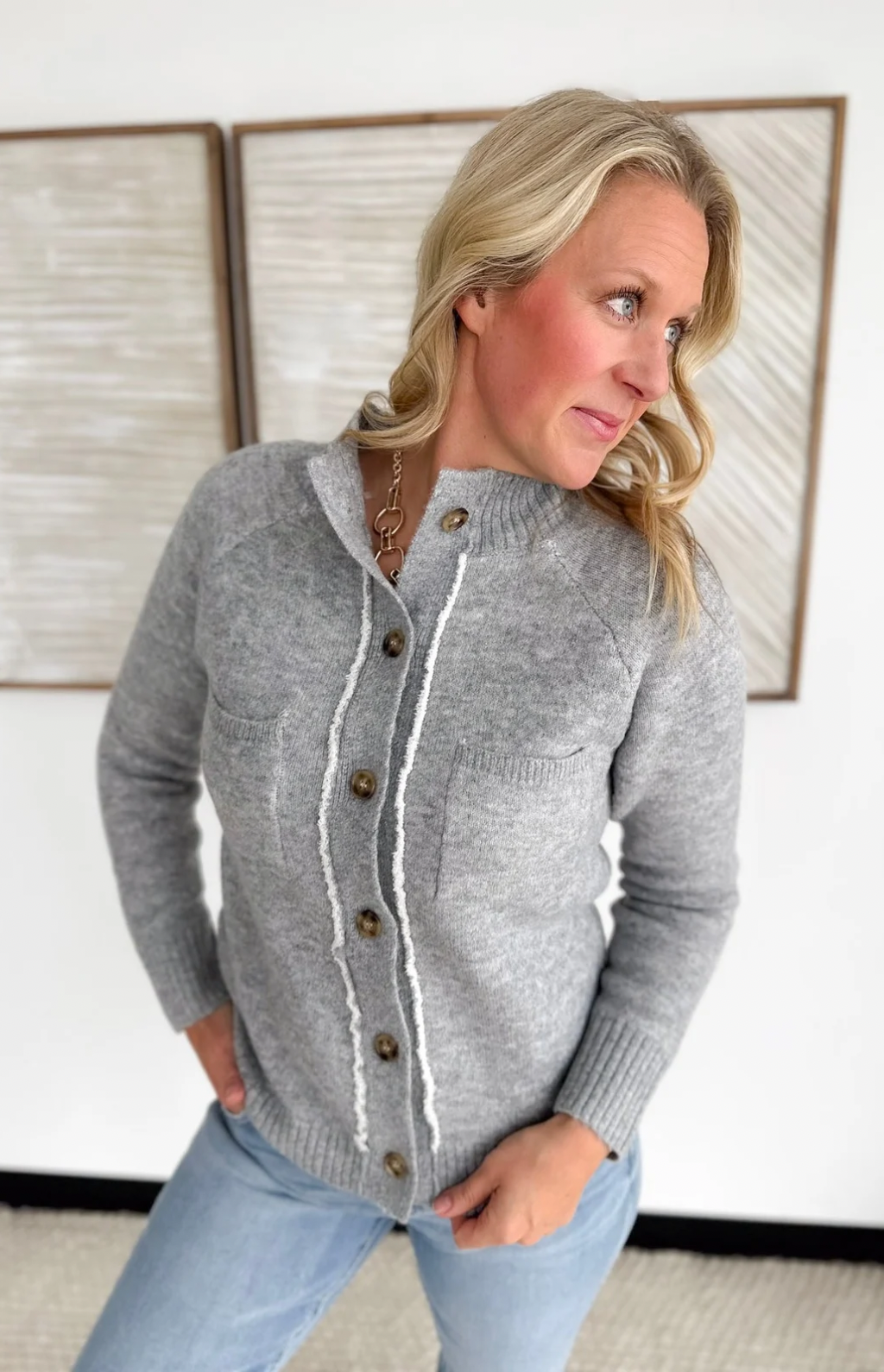 This knit cardigan is all about cozy sophistication. The mock neckline adds a polished touch, while the mini sherpa lining on the inside keeps you warm and snuggly without adding bulk. Button it up for a pulled-together look or leave it open for effortless layering over tees and tanks. The neutral hues pair with everything, making it a versatile piece for work, errands, or a relaxed weekend at home. It’s that perfect balance of comfort and style you’ll reach for again and again.