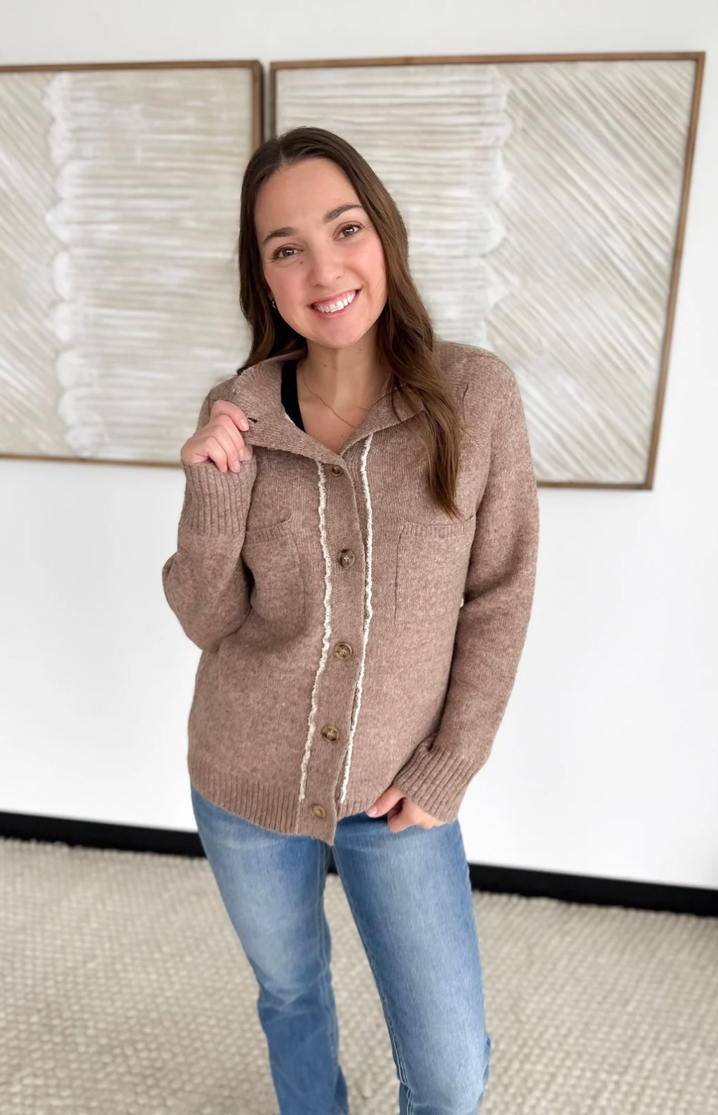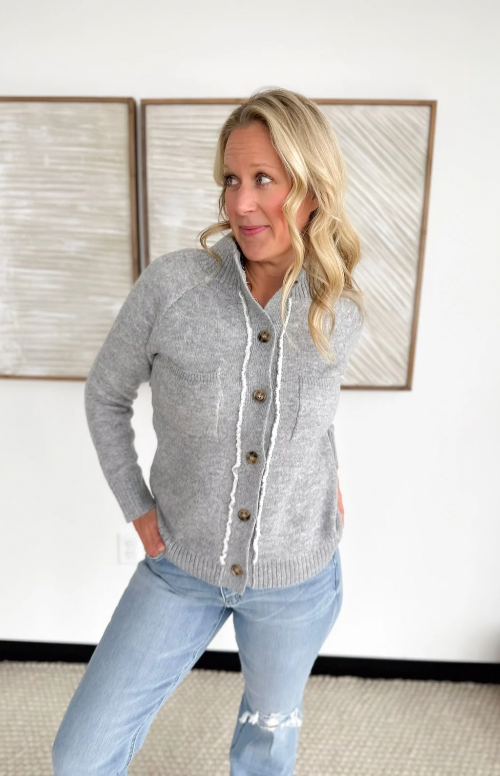 Mock Neck Sherpa Lined Button Cardigan (2 colors)