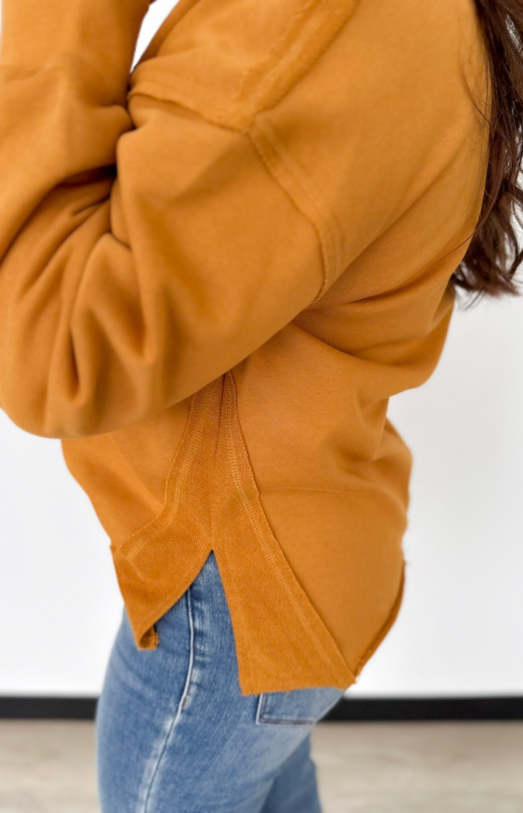 This mustard-colored half snap button pullover is the perfect mix of easy style and everyday comfort. The lightweight fabric makes it ideal for layering or wearing on its own, while the half snap closure adds a touch of casual flair and versatility. Its relaxed fit keeps you comfortable for busy days, whether you’re running errands, meeting friends, or lounging at home. Pair it with jeans, leggings, or joggers for a cozy, put-together look that feels effortless.