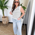 The cream and navy combo feels timeless and easy to pair with denim, white jeans, or shorts. Cute, versatile, and effortless—this is one of those pieces that makes getting dressed simple and fun.