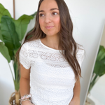 This off-white short sleeve floral lace top is such a sweet way to elevate your everyday look. The delicate lace adds just the right amount of femininity while still feeling easy and wearable. It’s lightweight and comfortable, making it perfect for busy days when you want to look polished without the effort.
